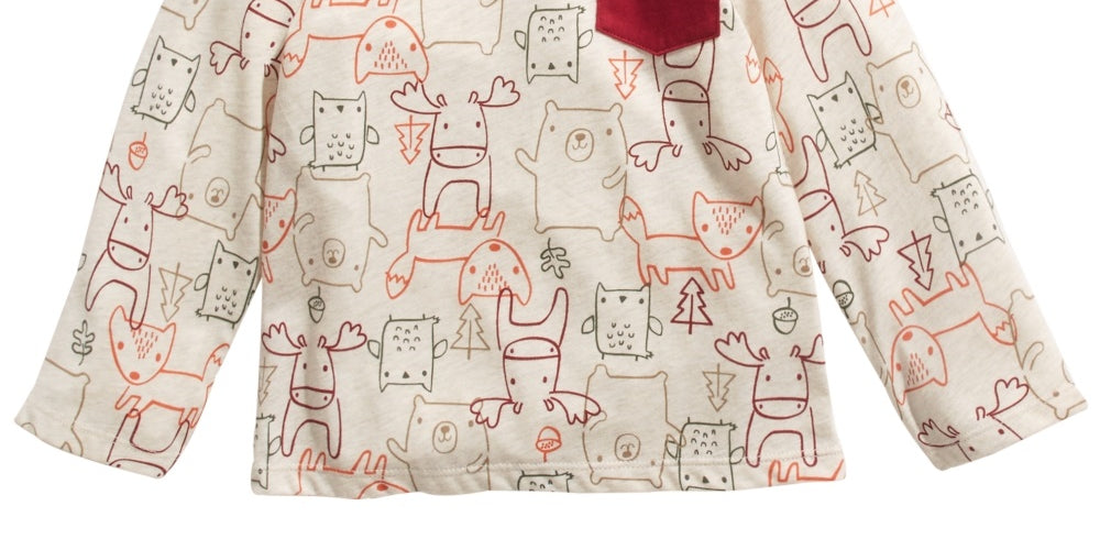Camiseta infantil de manga comprida com estampa de animais da floresta First Impressions, bege, tamanho 3 a 6 meses
