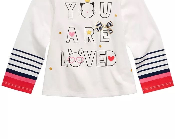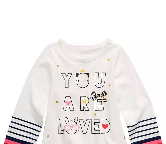 Camiseta infantil de algodão com estampa gráfica e manga comprida First Impressions para meninas, tamanho 2T