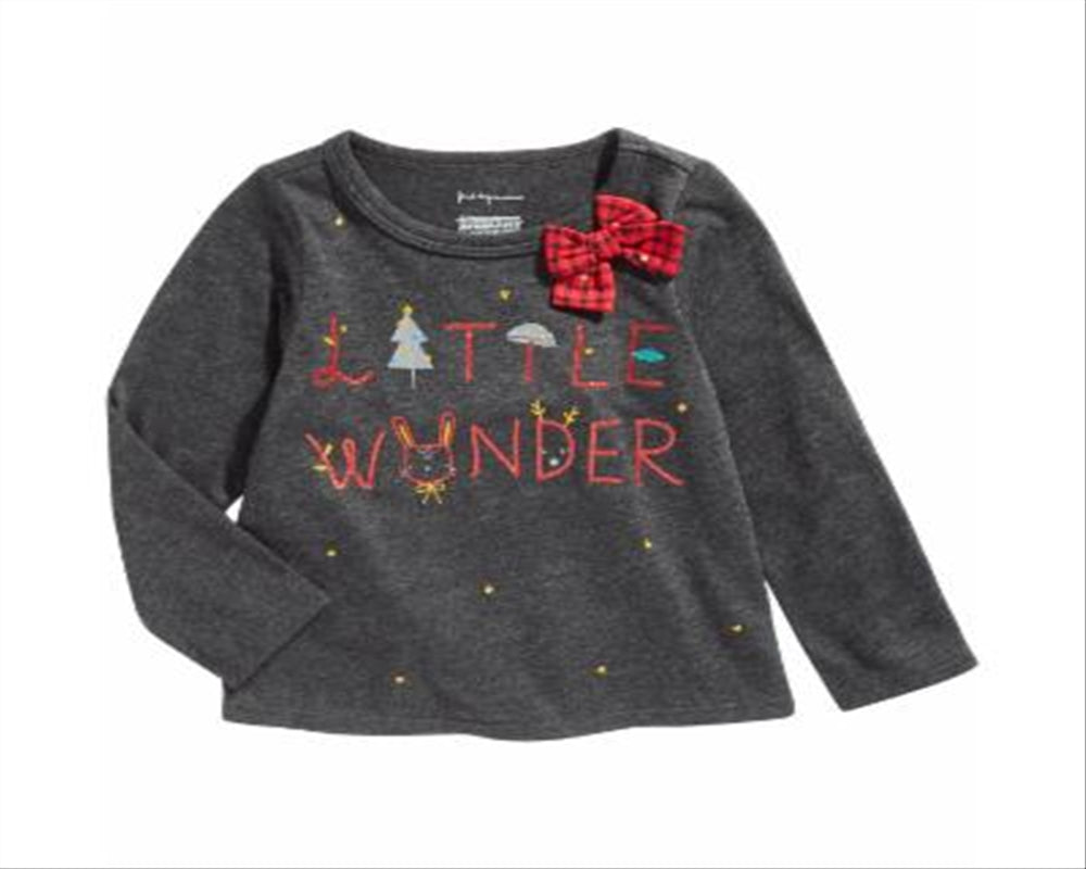 simplesmente maravilhosa; a camiseta de gola redonda da First Impressions apresenta um aplique de laço e uma linda estampa gráfica