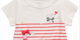 Camiseta listrada com estampa de cachorro First Impressions para bebê menina, branca, tamanho 3-6 M
