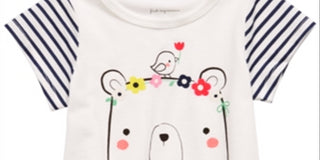 Camiseta de algodão com estampa de urso First Impressions para bebê menina, branca, tamanho 6-9 M