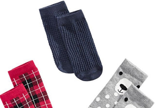 First Impressions Baby Plaid / Grid / Bear 3 pares de meias vermelhas tamanho 0-6 meses