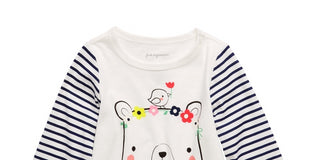 Camiseta infantil listrada de algodão First Impressions com urso, tamanho 3, branca