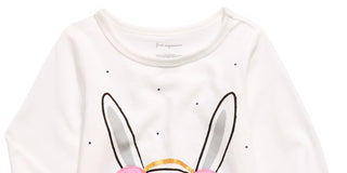 Camiseta infantil First Impressions com estampa de coelho e detalhes em lã sintética Sherpa, tamanho 12, branca