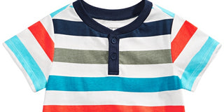 Camiseta Henley Listrada de Algodão para Menino First Impressions, Branca, Tamanho 24 MOS