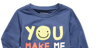 Camiseta de algodão com estampa de sorriso para meninos First Impressions Toddler, azul médio, tamanho 3T