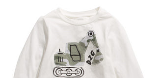 Camiseta infantil de algodão com estampa de construção First Impressions para bebês meninos, branca, tamanho 18