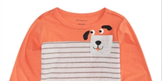 Camiseta com bolso e estampa de cachorro First Impressions para meninos, tamanho 6 a 9 meses