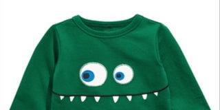 Camiseta infantil First Impressions com aplique de rosto de monstro para meninos, verde, tamanho 12 meses