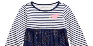 Túnica listrada de algodão para bebê menina First Impressions, manga longa, confete, branca, tamanho 6 a 9 meses