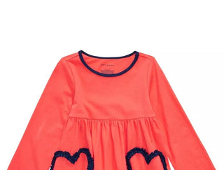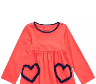 Túnica infantil de algodão com manga comprida e estampa de coração First Impressions para meninas, tamanho 4T, laranja