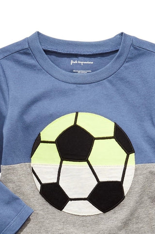 Camiseta infantil First Impressions com estampa de futebol e blocos de cores, azul, tamanho 12 meses