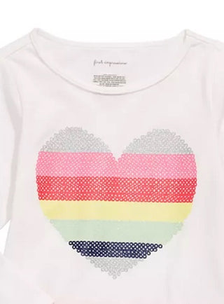 Camiseta Peplum de Algodão com Coração Arco-Íris para Bebê First Impressions, Branca, Tamanho 18 Meses