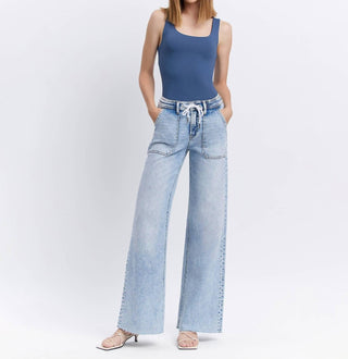 Flying Monkey - HIGH RISE DRAWSTRING WAISTBAND WIDE LEG JEANS
