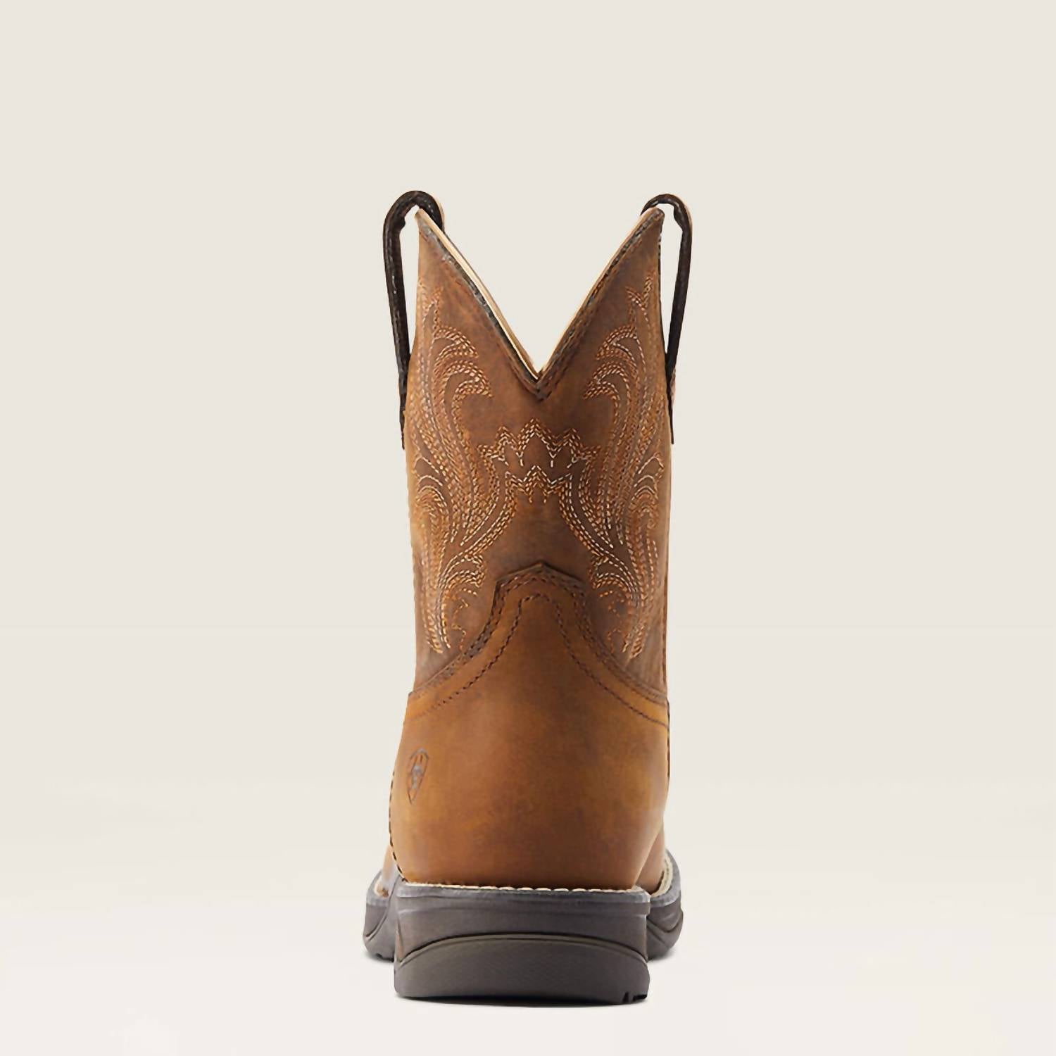 Say hello to the perfect, most versatile boot. The ankle height makes this style easily transition from day to night. Wear them with your favorite skinny jeans and tee for a more laid back look, or pair them with your favorite mini dress and jacket for a night out on the town. The Women's Round Toe Shortie Waterproof Western Boot by ARIAT presents a fusion of style and practicality with its glazed brown leather construction. This ankle bootie features a round toe and a sturdy block heel with a height of 1.5 inches, offering both comfort and a slight lift for your vacation-ready outfits. Ideal for the fall season, its Western flair makes it a must-have for fashion-forward wardrobes. Designed for women who value both fashion and function, its waterproof features ensure you stay stylish even in damp conditions.