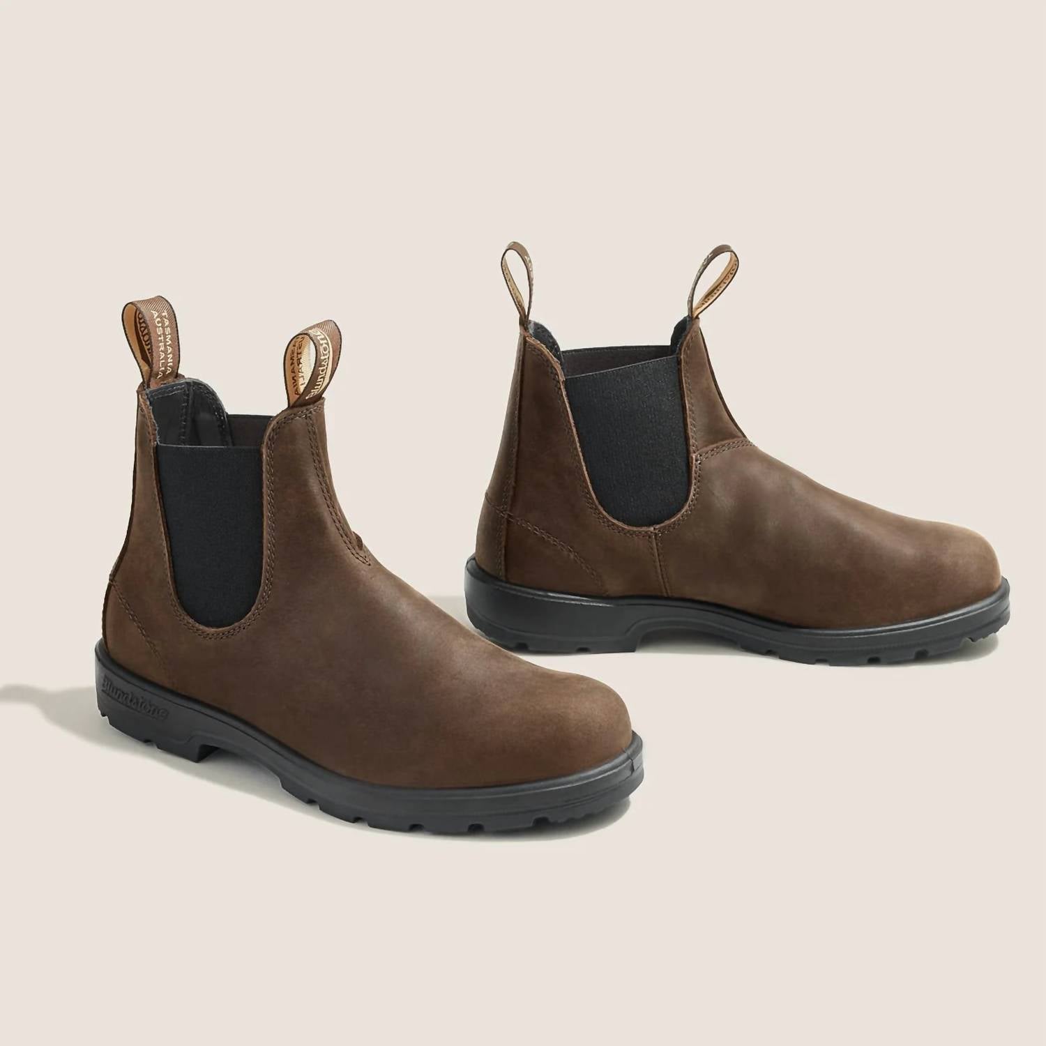 Say hello to the perfect, most versatile boot. The ankle height makes this style easily transition from day to night. Wear them with your favorite skinny jeans and tee for a more laid back look, or pair them with your favorite mini dress and jacket for a night out on the town. Step up your style with the Women's Classic 1609 Chelsea Boots by Blundstone, crafted in antique brown premium water-resistant leather. These ankle boots feature a classic round toe and flat heel, with black elastic sides for easy slip-on wear. Comfort is paramount, with a leather-lined interior, cushioned midsole, and a removable footbed with XRD® Technology for superior shock absorption. Keep them fresh with care instructions that suggest using leather polish and avoiding direct sunlight for longevity.