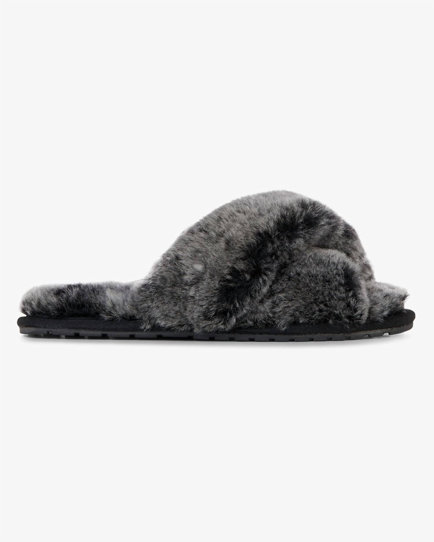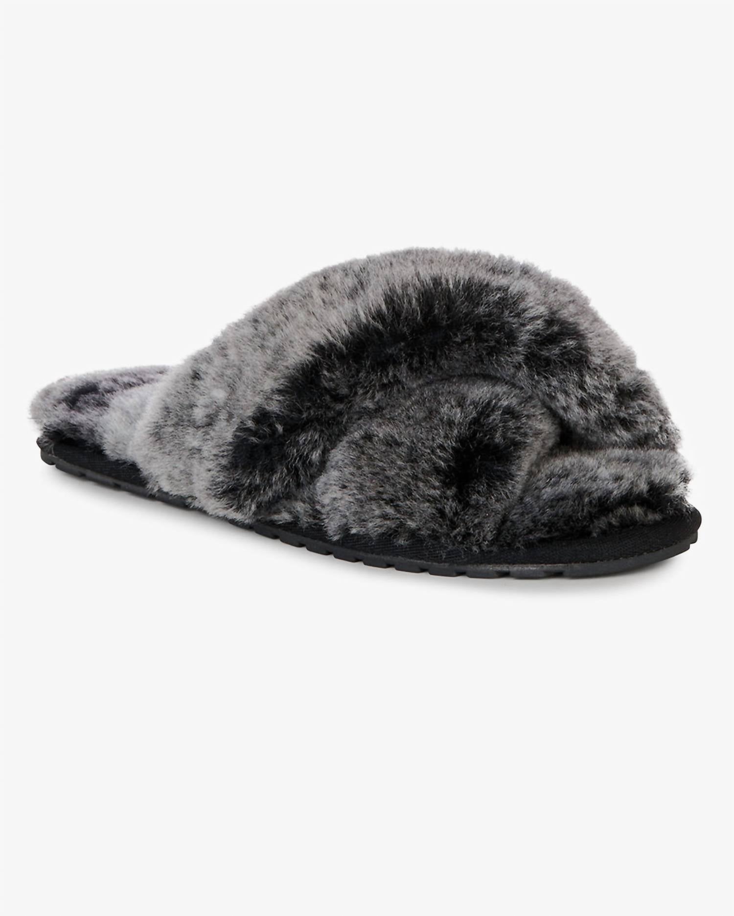 So comfy it's like you're walking on clouds. These slippers offer a fresh take on a beloved design, crafted from the softest sheepskin with a frosted tip finish. Featuring a crossover design, they ensure comfort and a secure fit, making them perfect for all-day wear. The durable sole provides versatility for both indoor and outdoor use, keeping your feet cozy wherever you go.
