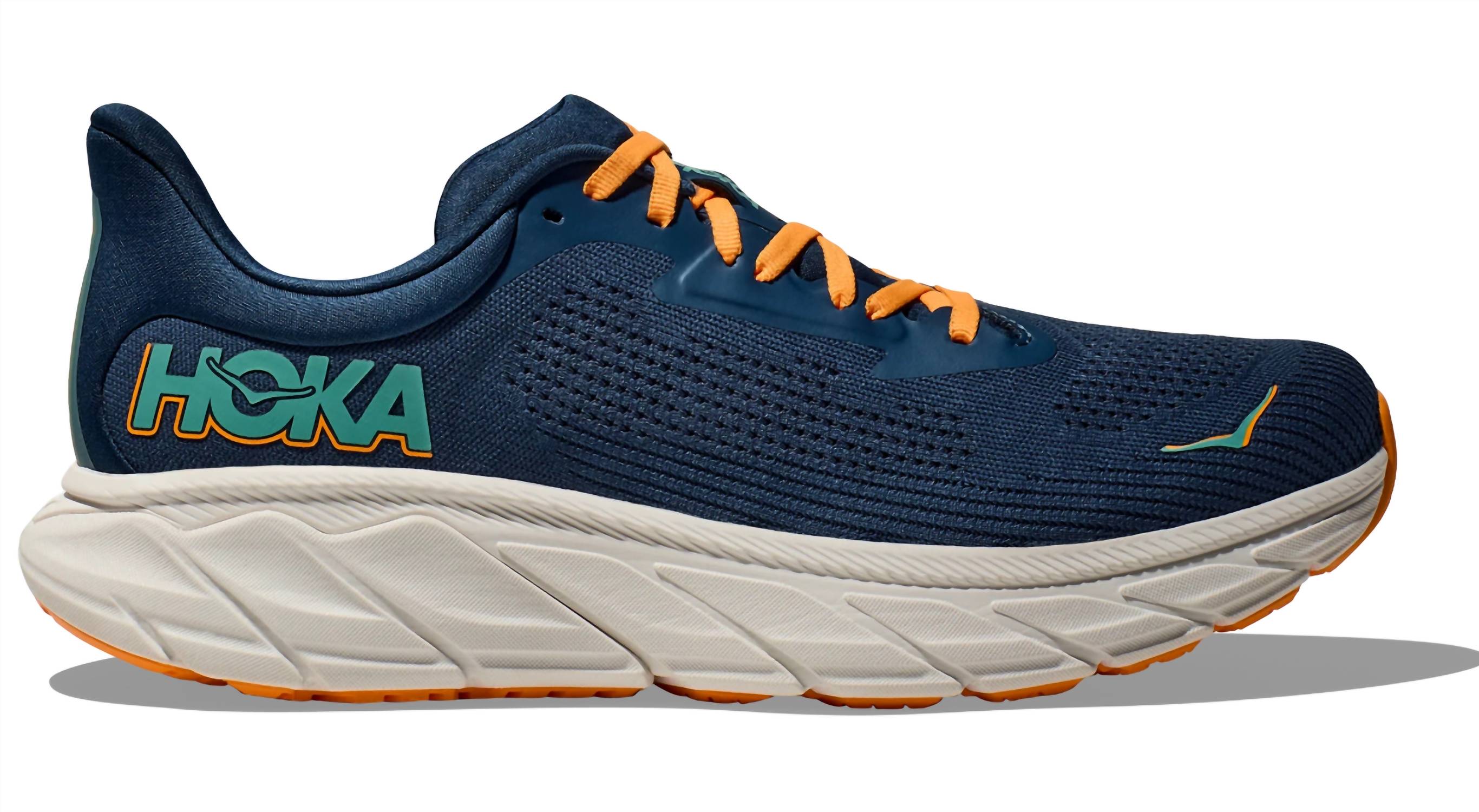 The Arahi 7 is a lightweight running shoe designed for stability and comfort. It features a flat-knit, fully vegan upper with improved breathability and a plush tongue for a secure fit. The shoe includes a lace closure, removable Ortholite foam insole, and a compression-molded EVA midsole with meta-rocker and J-Frame technology for support and stability. The high-abrasion rubber outsole provides durability. It weighs 8.1 ounces with a 5 mm heel-to-toe drop and has been awarded the American Podiatric Medical Association seal of approval. The roomy toe box allows natural movement, while the J-Frame support prevents overpronation.