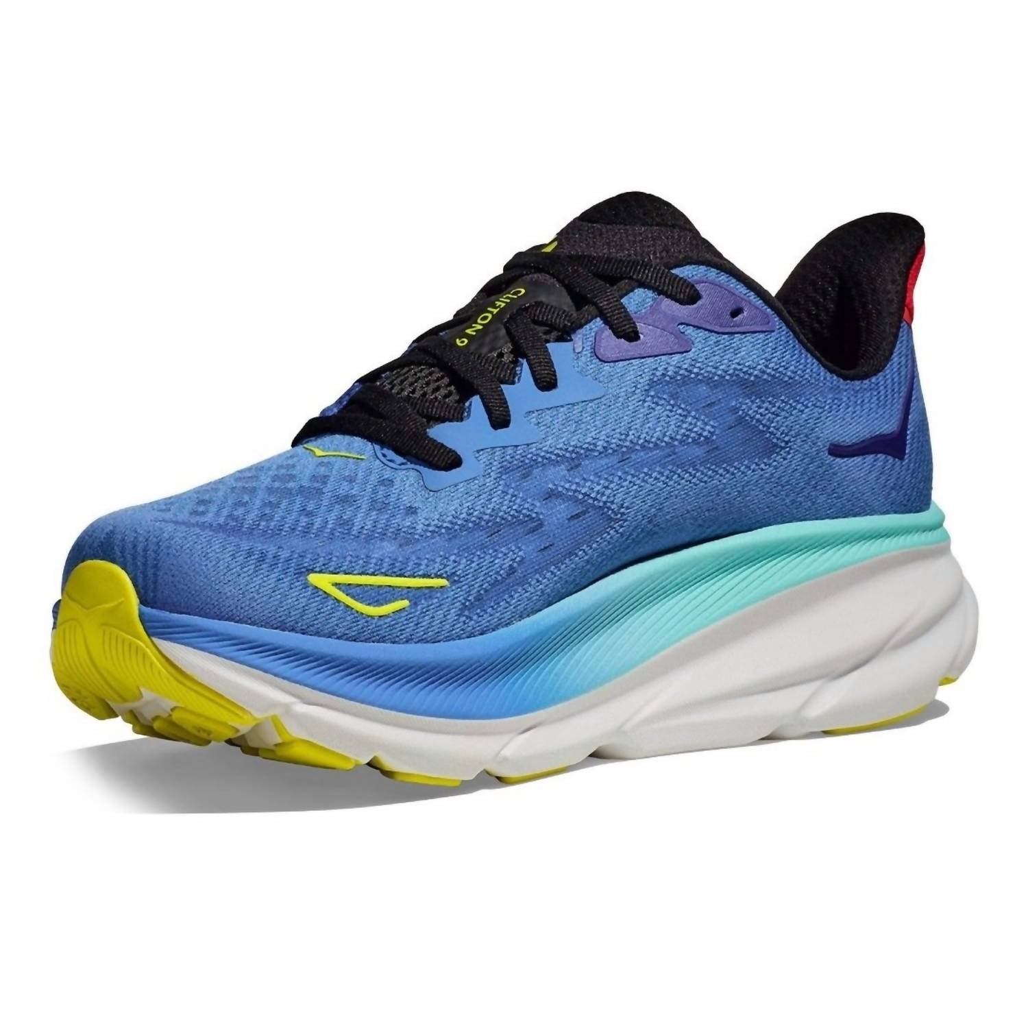 Introducing the Men's Clifton 9 Sneakers by Hoka. These sneakers feature a breathable knit upper with mesh panelling and a logo print to the side. The lace-up design keeps you secure, while the chunky rubber sole ensures superior traction. Made with 100% recycled polyester and mesh outer, and a branded insole, these essentials are a perfect fit for your fall collection.