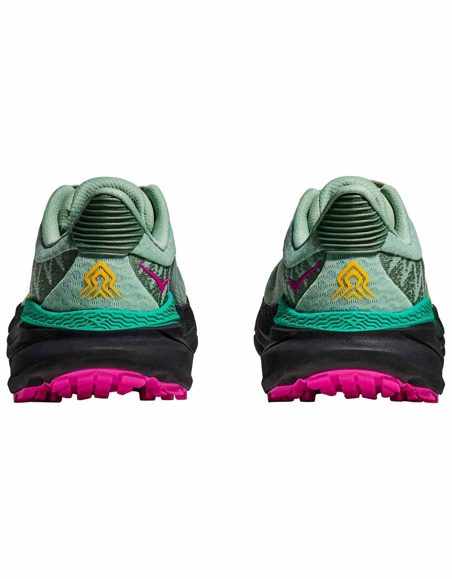 Stylish, comfortable and supportive. These athletic sneakers check all of the boxes. Experience the versatility of the Women's Challenger Atr 7 Running Shoes by Hoka. These all-terrain trail shoes feature a breathable recycled mesh upper paired with a lightweight CMEVA midsole for superior impact absorption. Designed with a durable Durabrasion rubber outsole, they incorporate small central and larger perimeter lugs for exceptional grip on varied terrains. Weighing just 207 grams, they provide natural stability and optimal comfort with a 5 mm drop, ideal for those who effortlessly transition from flat grounds to mountain trails.
