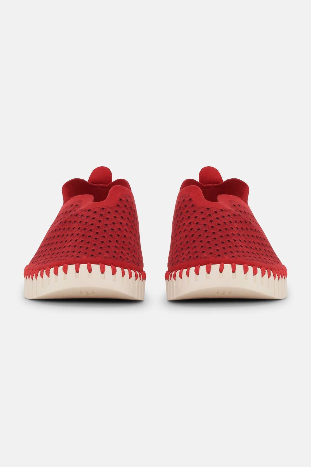 A preppy yet feminine take on the classic loafer. Elevate your footwear collection with the Women's Original Tulip Flats by Ilse Jacobsen, a perfect blend of eco-friendly design and boho chic style. Crafted with a recycled microfiber upper and featuring a captivating laser-cut pattern, these flats exude style while supporting sustainability. The iconic Tulip outsole combines 75% natural rubber and 25% recycled rubber, expertly stitched with recycled thread for a glue-free construction. Step into comfort with the pig suede-lined insole that offers remarkable cushioning and support, making these flats ideal for your summer vacation wardrobe.