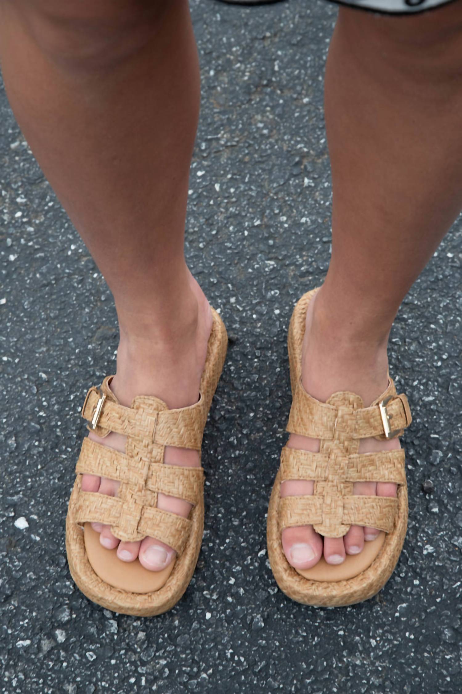 Flowy dresses, cropped pants, and even jumpsuits... this sandal works with them all! Step into style with the Women's Ciao Platform Sandal by Matisse, a must-have for spring and summer travels. These sandals, in a versatile cognac color, are crafted from raffia and feature a low, flat heel measuring between 1 1/4" to 2". Designed with a round toe, fisherman style, and three adjustable buckle straps, they offer both comfort and a nod to '90s fashion. Perfect for pairing with sundresses, these imported sandals are ideal for beach outings and casual strolls.