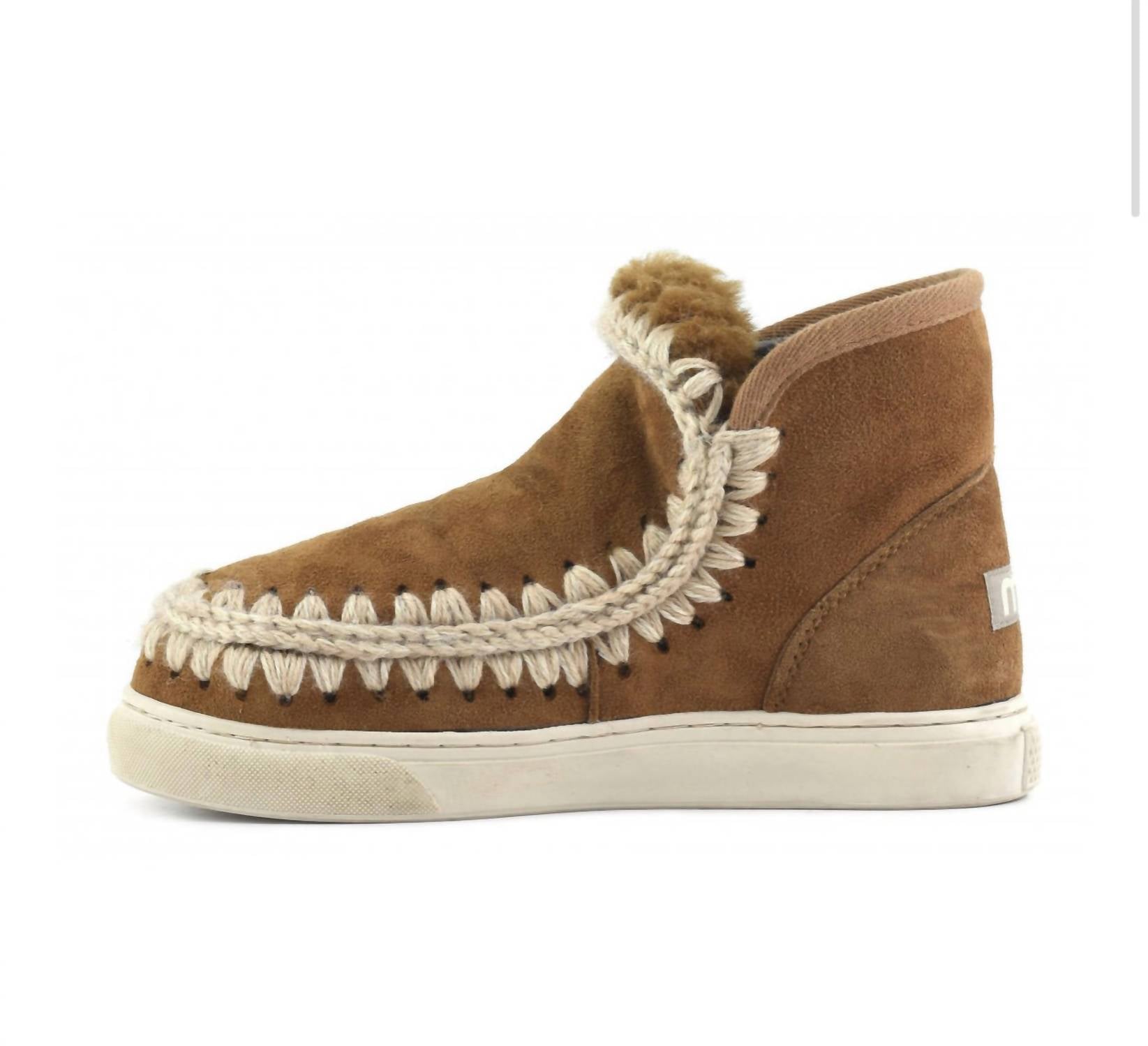 Get your daily steps in with these adorable sneakers. Introducing the Women's Eskimo Sneaker by mou, an essential addition to your winter wardrobe. Crafted with soft double-face sheepskin and featuring crochet stitch detailing, these sneakers offer a luxurious blend of style and comfort. With a durable comfort sole and a height of 16cm, they're ideal for cold weather pursuits. Designed with a round toe and flat heel, these sneakers are perfect for a cozy housewarming occasion.