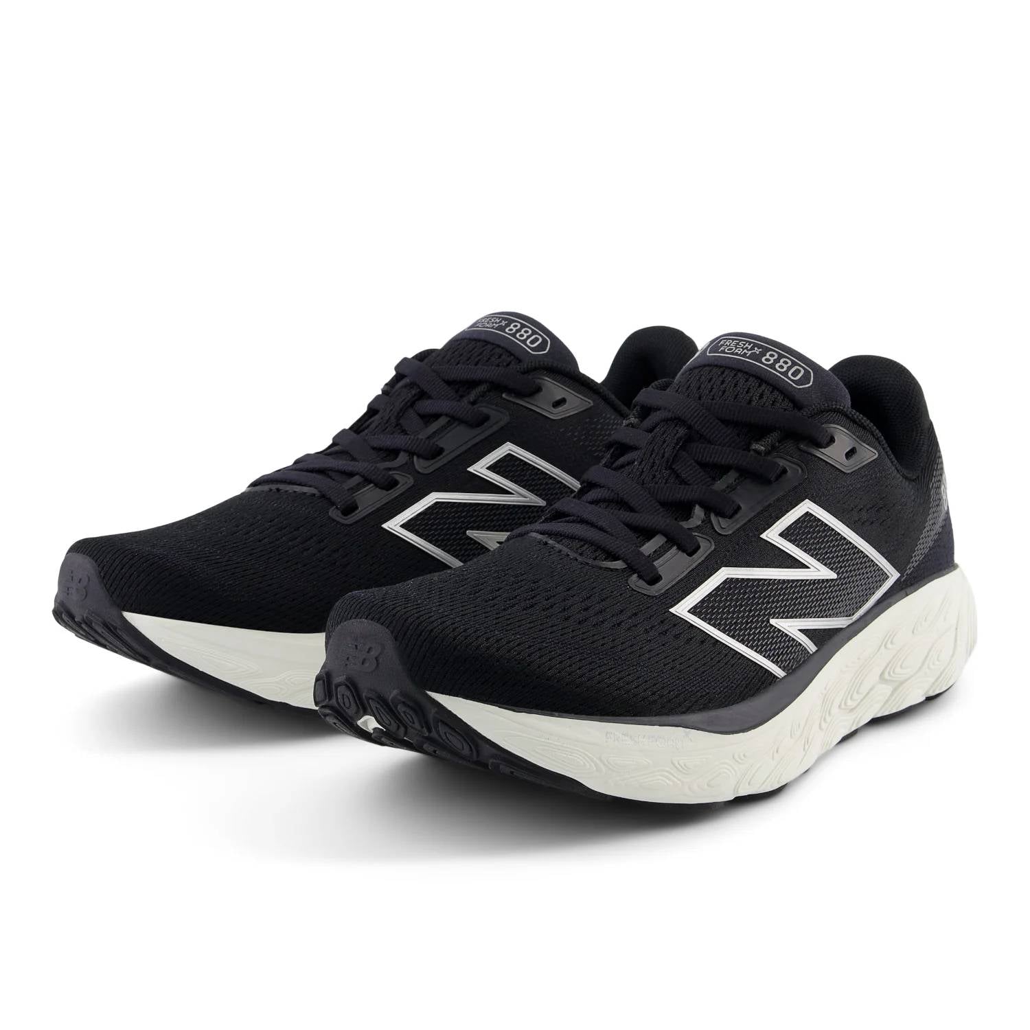 Introducing Women's 880v14 Running Shoes by New Balance, crafted for exceptional performance and comfort in a sleek Black/Sea Salt/Silver Metallic design. These athletic shoes feature a Fresh Foam X midsole with approximately 3% bio-based content for an unparalleled cushioned experience and an engineered mesh upper for a modern fit. The NDurance rubber outsole enhances durability in high-wear areas, and the shoes boast a 10mm drop to provide balance and support during runs. Recommended for fitness and workouts, these shoes have also received the Seal of Acceptance from the APMA, ensuring quality and foot health.