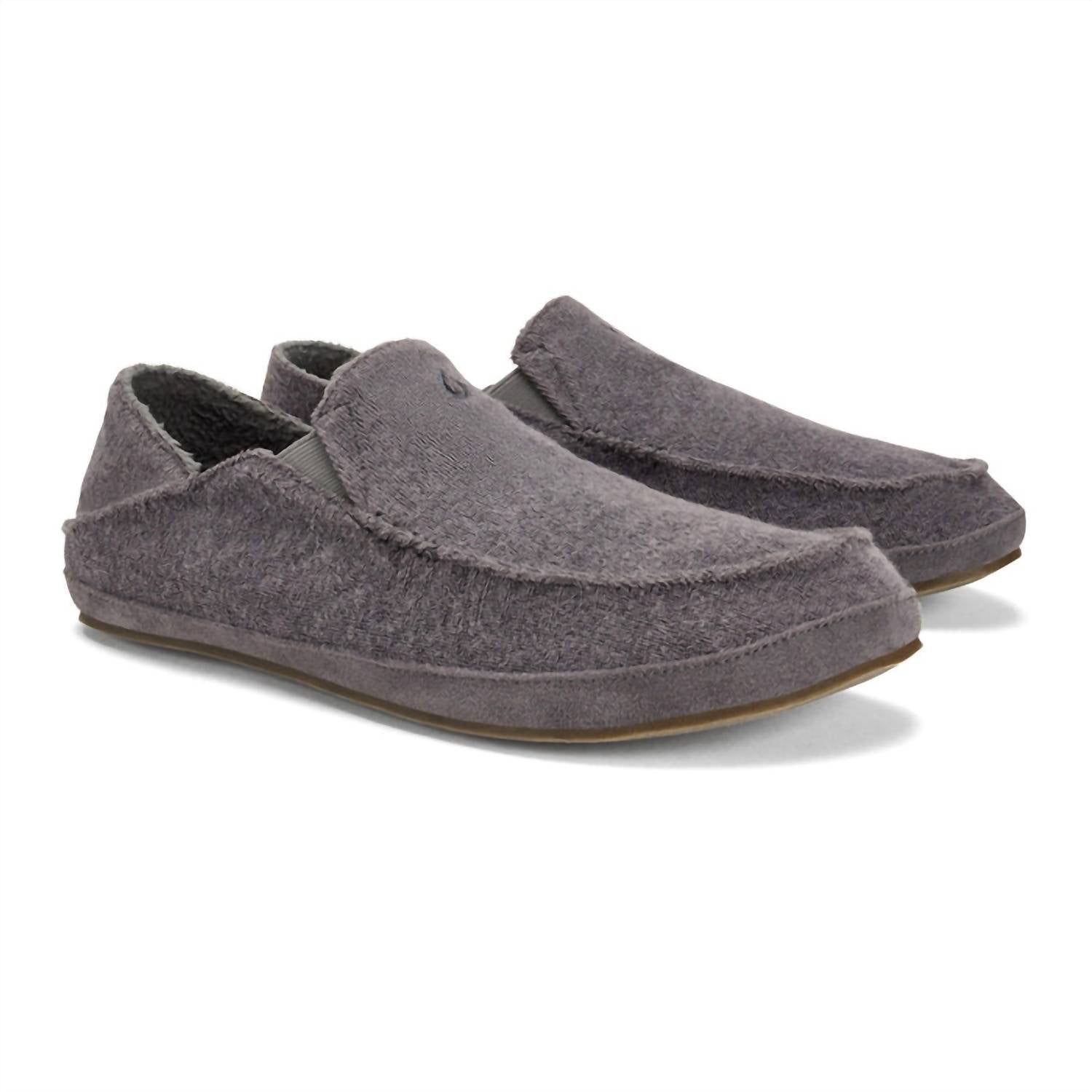 Step into ultimate comfort with the Men’s Moloa Hulu Slippers by OluKai, crafted for those laid-back moments at home. These slippers, presented in a minimalist design and rock color, feature a cozy wool-blend lining paired with a heathered knit exterior to ensure warmth during winter months. They are ideal for vacation lounging with their flat heel and round toe shape. Designed for adult men, these slippers epitomize relaxed, stylish indoor wear.