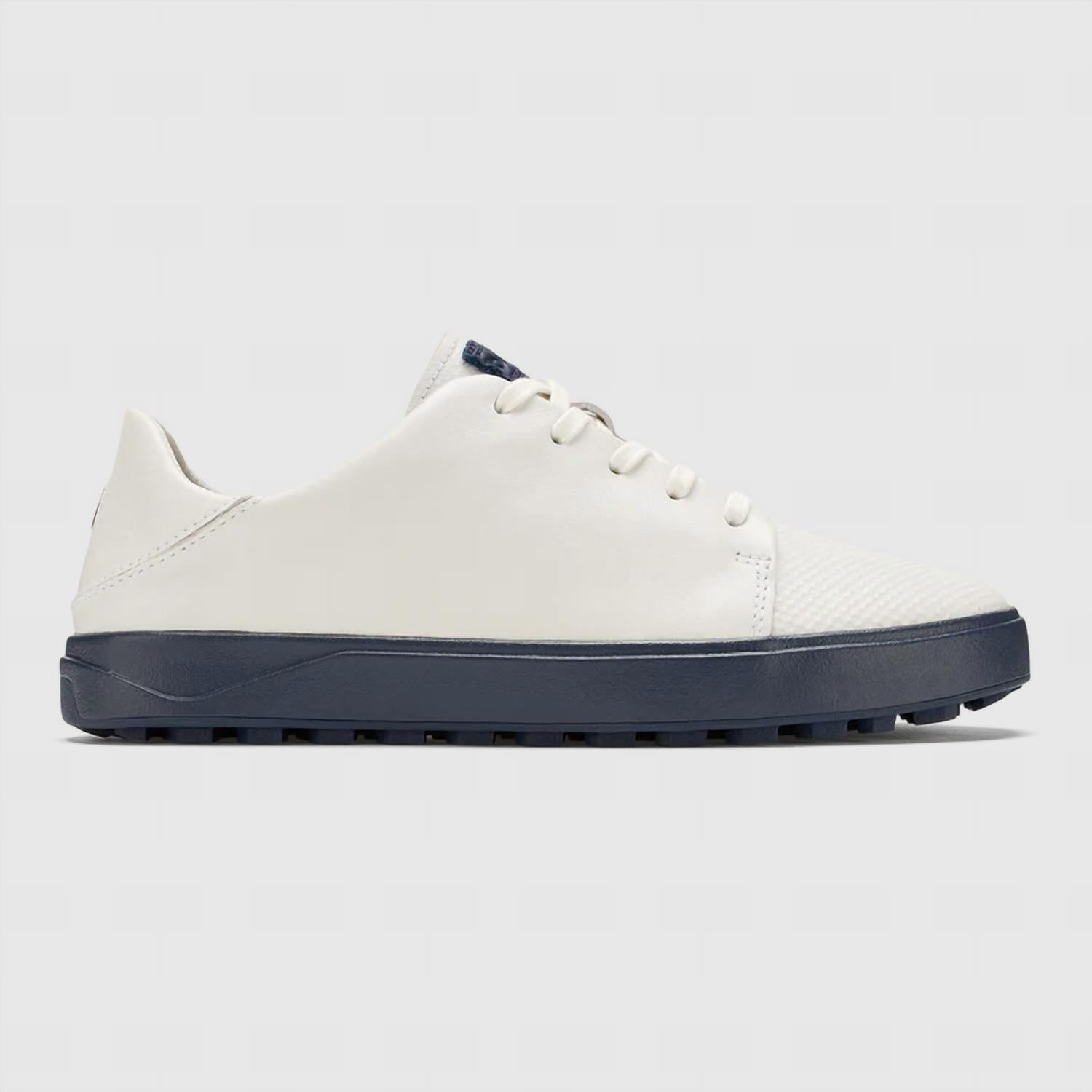 Step up your game this summer with the OluKai Women’s Wailea Golf Shoe in Bright White and Mood Indigo. Crafted from supple, waterproof leather, these sneakers offer both style and function with a cushioned midsole and spikeless Wet Grip rubber outsole for excellent traction. The shoes feature a convenient drop-in heel design and a removable, washable EVA footbed with arch support for ultimate comfort. Enjoy the round toe silhouette and lace-up closure, perfect for both streetwear trends and golfing on vacation. Made for adults, these sneakers are imported for quality assurance.