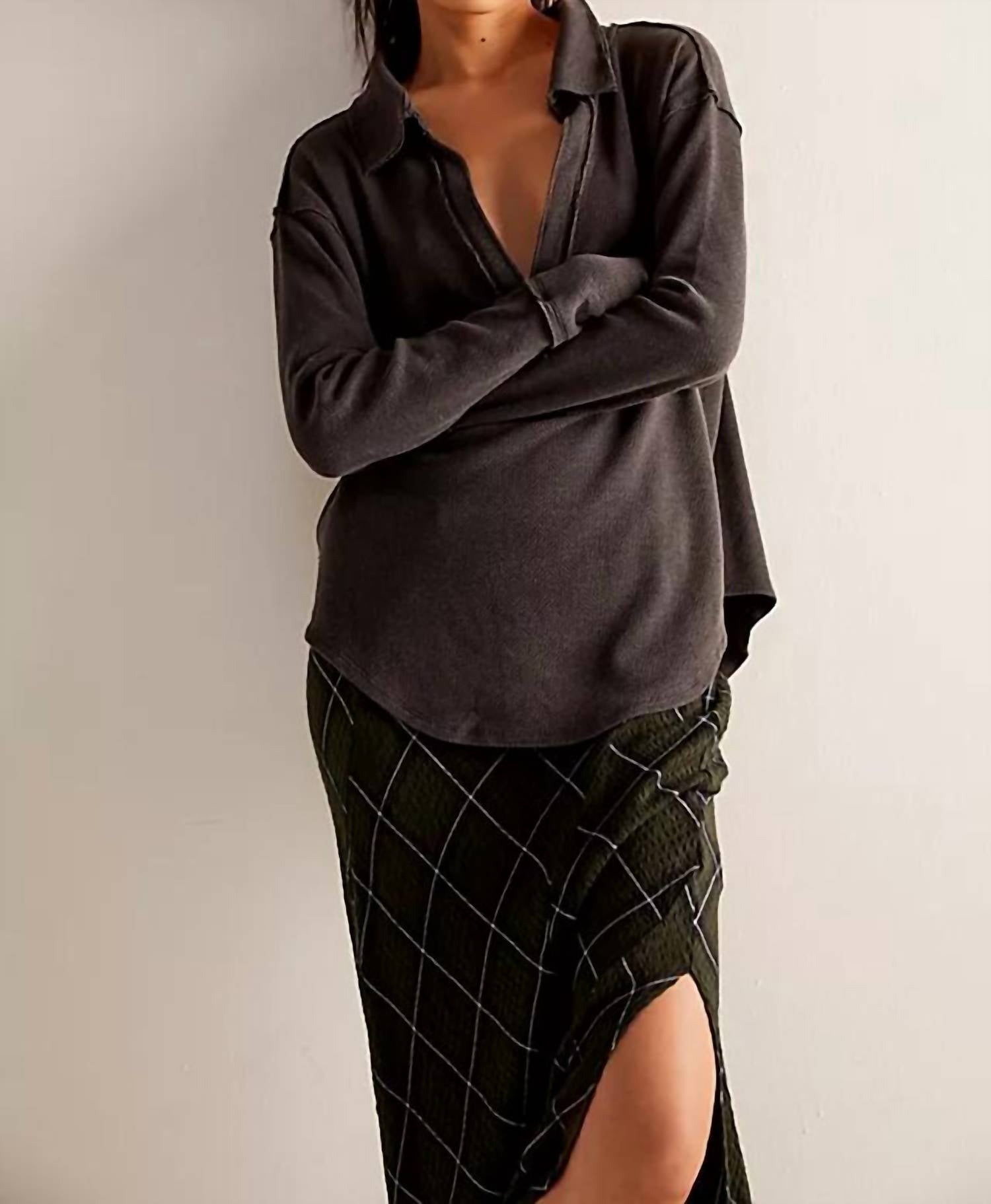Tão descolado e clássico, este top térmico atemporal apresenta uma silhueta com gola inspirada em Henley e um tecido macio e texturizado com bainhas desgastadas para um visual verdadeiramente usado. Bainha arredondada com decote inspirado em Henley. Costuras expostas em toda a peça. Peças básicas inspiradas na herança e usadas. We The Free é uma marca própria. Cuidados/Importação: Lavagem à máquina com água fria. Importação: Medidas para tamanho pequeno. Busto: 109 cm. Comprimento: 65 cm. Comprimento da manga: 58 cm.