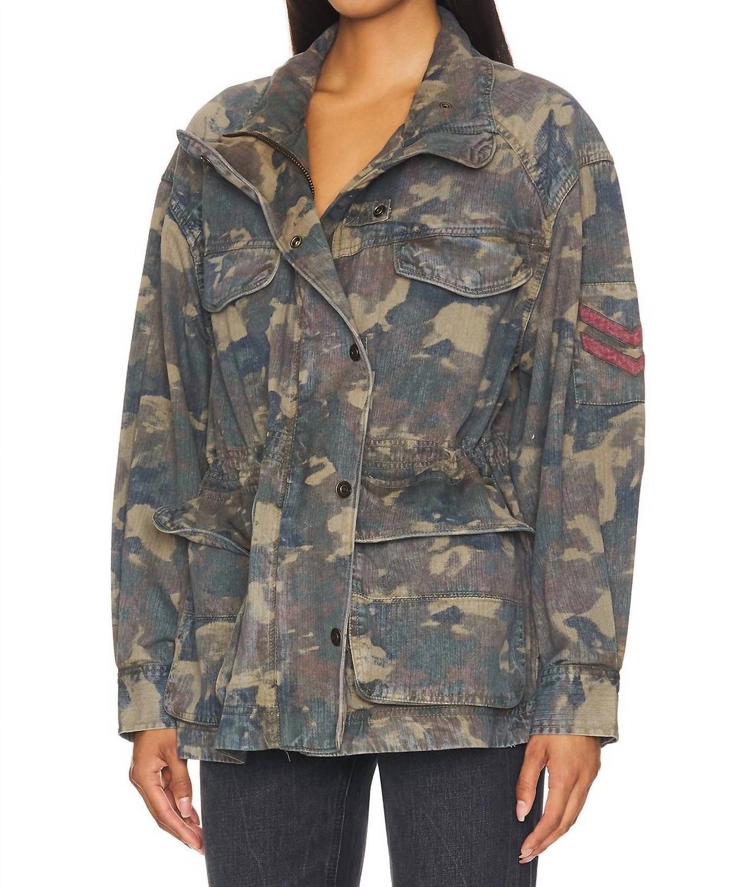 A jaqueta utilitária definitiva para garotas descoladas. Apresentamos a Jaqueta Utilitária Arya Camo da Free People, uma escolha estilosa para quem aprecia moda utilitária de destaque. Esta jaqueta apresenta um distinto padrão camuflado em um tom oliva-pó, confeccionada em veludo cotelê durável. Com mangas compridas e gola alta, oferece praticidade e estilo, com bolsos funcionais e fecho de botão. Cuidados: Lavar à máquina.