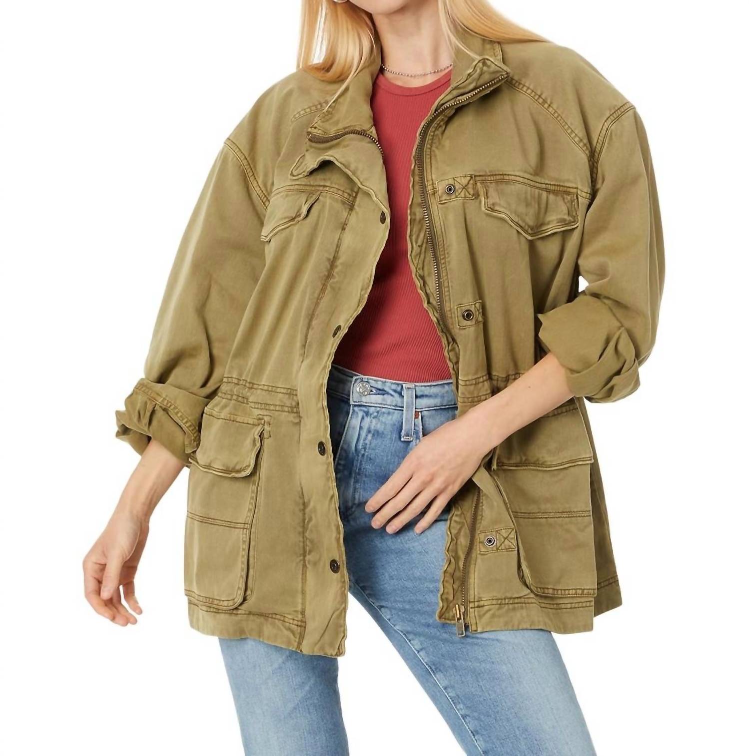 A jaqueta utilitária mais descolada e versátil. Combine com seu jeans favorito ou use-a sobre qualquer vestido do dia a dia. Conheça a Jaqueta Utilitária Arya da Free People, uma adição estilosa e prática ao seu guarda-roupa na cor Dried Herb. Com mangas compridas e punhos abotoados, esta jaqueta apresenta um botão clássico com fecho frontal em zíper e quatro bolsos espaçosos para versatilidade. Confeccionada em 100% algodão, esta peça mede 72 cm de comprimento no tamanho XS. Cuide dela com facilidade, pois pode ser lavada na máquina para sua conveniência.