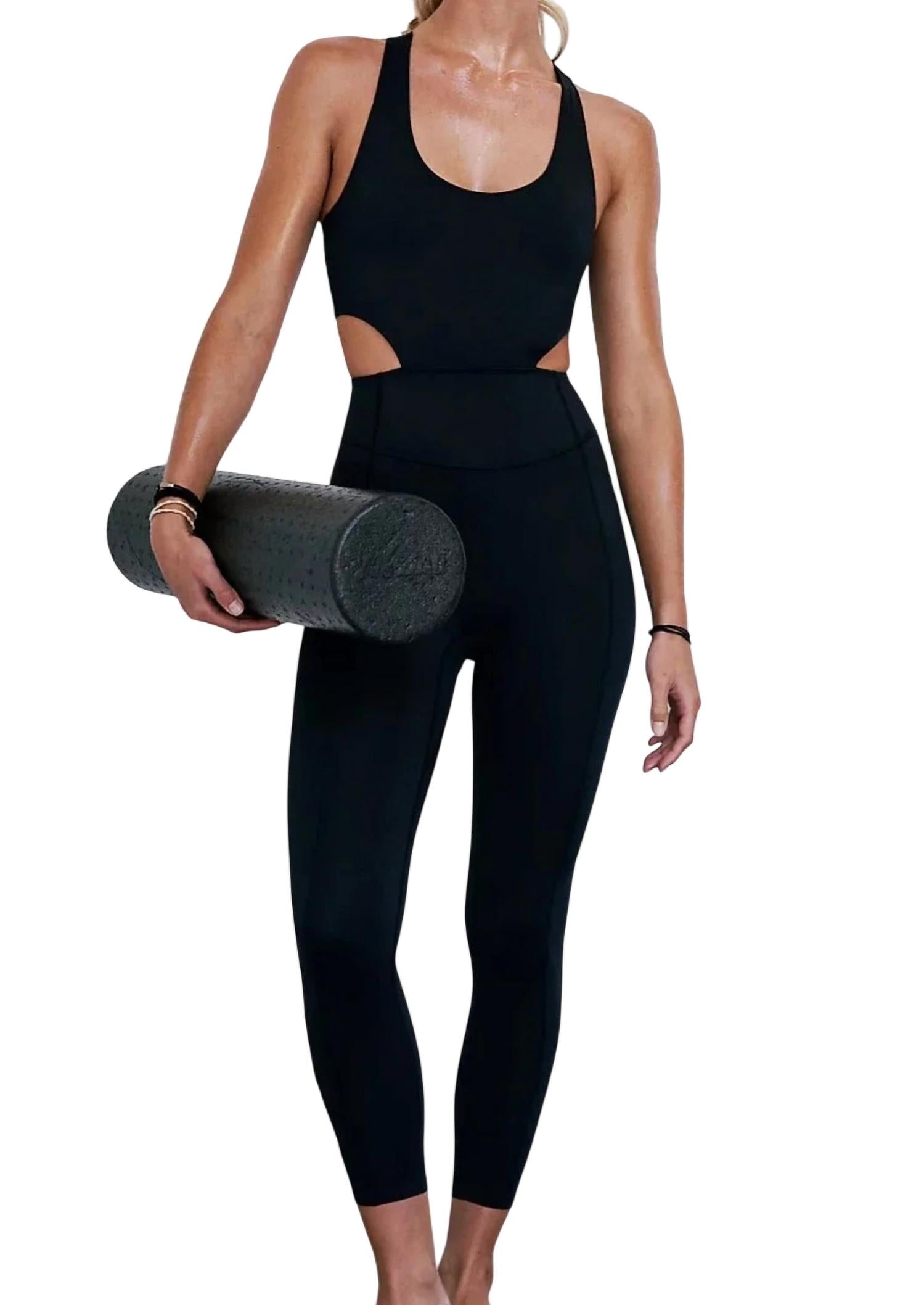 Este macacão cardiofitness apresenta um corte justo com tecido macio e sedoso, costas com alças ousadas e uma prateleira de sutiã embutida para suporte. Inclui também um bolso traseiro embutido e comprimento cropped 7/8. Confeccionado em 80% poliéster e 20% elastano, com forro de 81% poliamida e 19% elastano. O tamanho pequeno tem 23,5 polegadas de costura interna, cintura de 27,5 polegadas, busto de 26,5 polegadas, quadris de 44 polegadas e 10 polegadas de altura. Lavável à máquina. Importado.