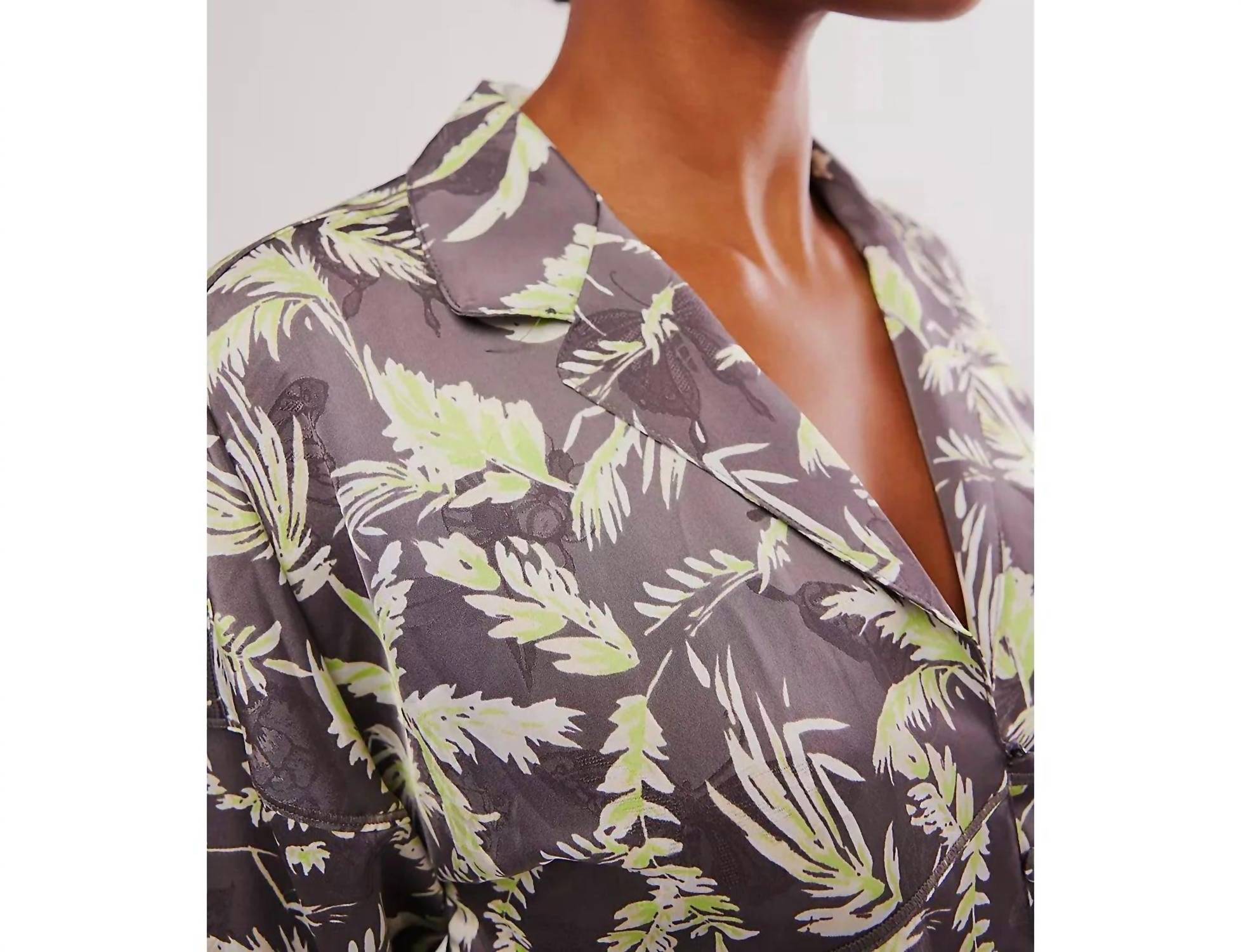 Este conjunto de pijama Beauty Sleep inclui uma blusa curta de manga comprida com botões, decote em V e peplum, e shorts combinando com cós elástico. Feito de 100% poliéster sedoso, oferece conforto e elegância para noites tranquilas.