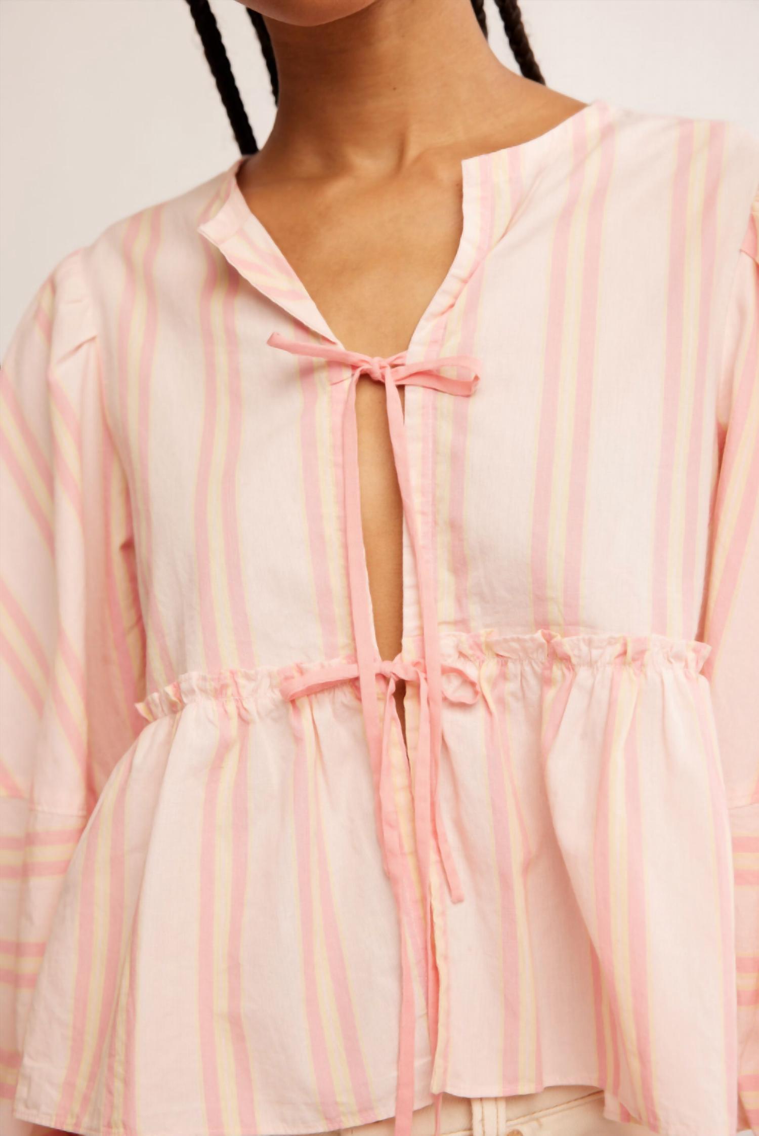 Uma blusa atemporal que nunca sai de moda. Apresentamos a Blusa Brunch Babe da Free People, uma adição encantadora ao seu guarda-roupa com uma estampa divertida de listras rosa e amarelas. Esta blusa versátil possui mangas longas e um decote em V charmoso, perfeito para qualquer ocasião casual. Confeccionada em algodão confortável, com comprimento de 57 cm, ela foi projetada para facilitar o estilo com um prático fecho de pressão. Instruções de cuidado: Lavar à máquina para manter seu visual vibrante.