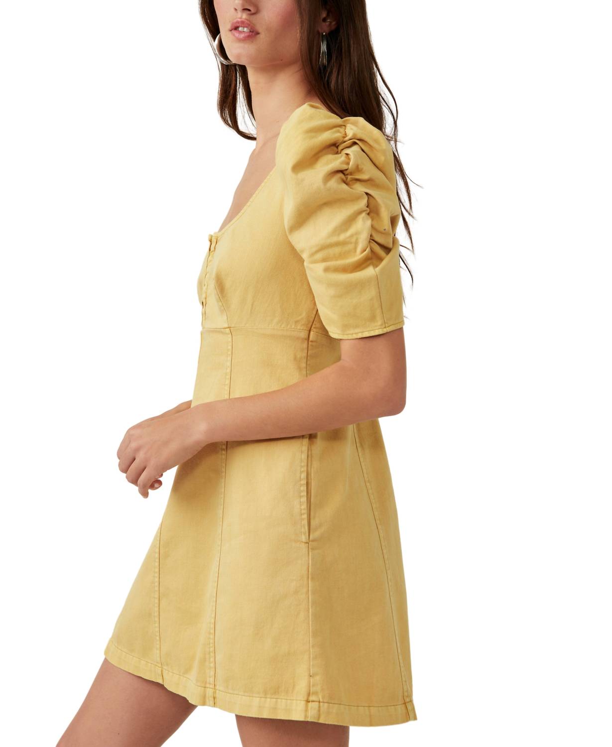O tipo de vestido prático e elegante que você vai usar durante toda a estação. 100% algodão. Fecho de colchete. Decote redondo. Mangas curtas bufantes. Sem forro. Importado. 82 cm de comprimento. Lavável à máquina.