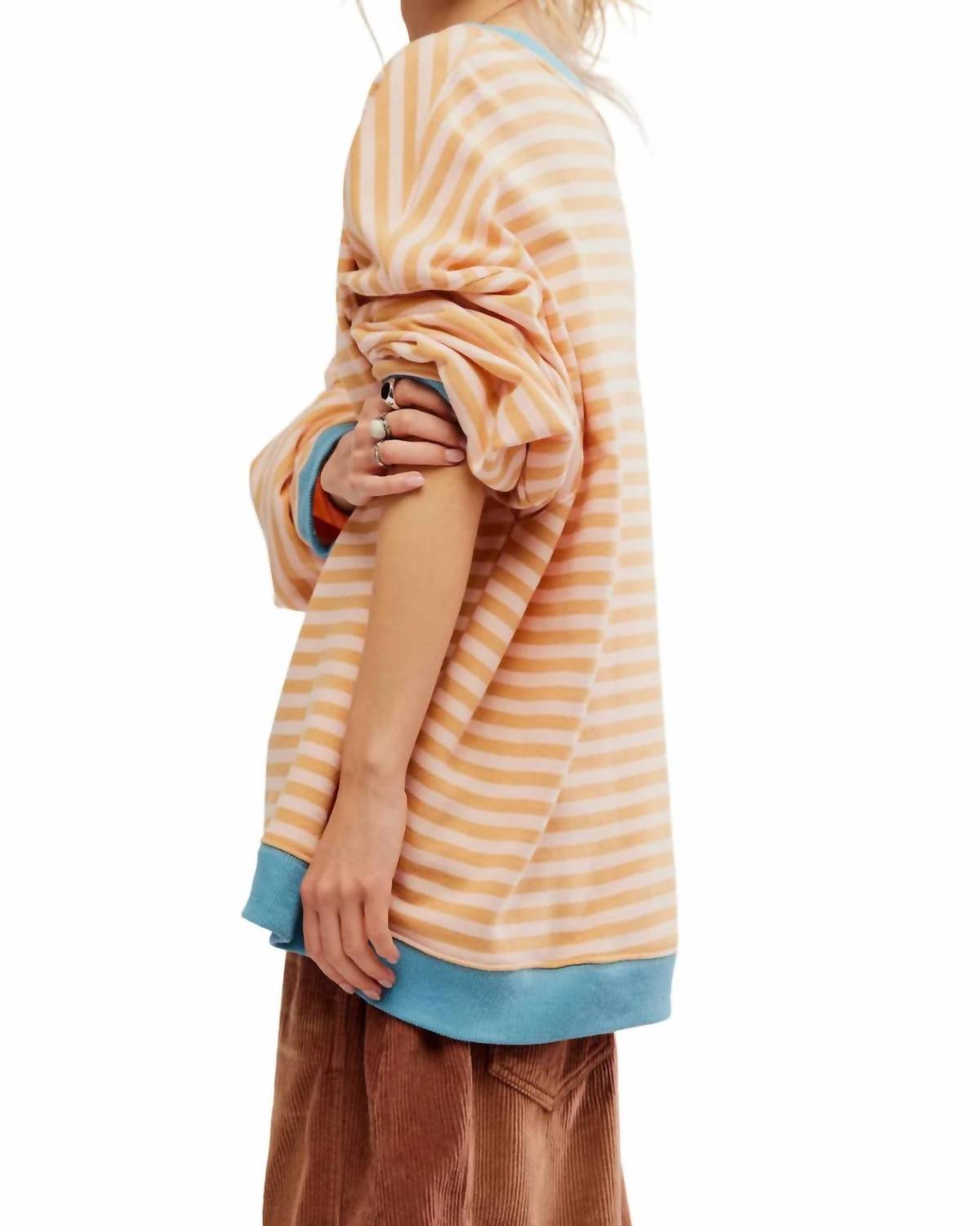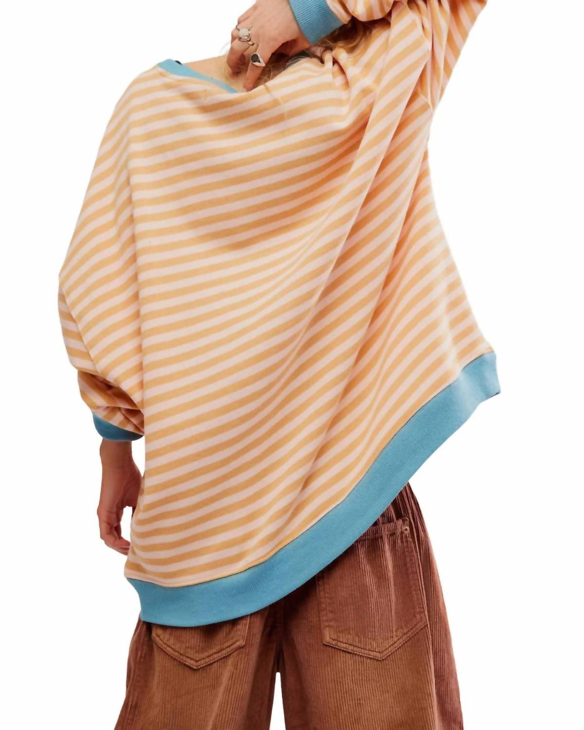 Uma blusa de manga comprida que você pode usar com jeans, saias, bem... quase tudo! Confeccionada com uma luxuosa mistura de 80% algodão e 20% poliéster. Promete conforto e durabilidade. A silhueta ampla e relaxada apresenta um elegante decote redondo e ombros caídos. Oferecendo elegância sem esforço. Delicadas bainhas contrastantes em azul. Combina design elegante com o máximo conforto.