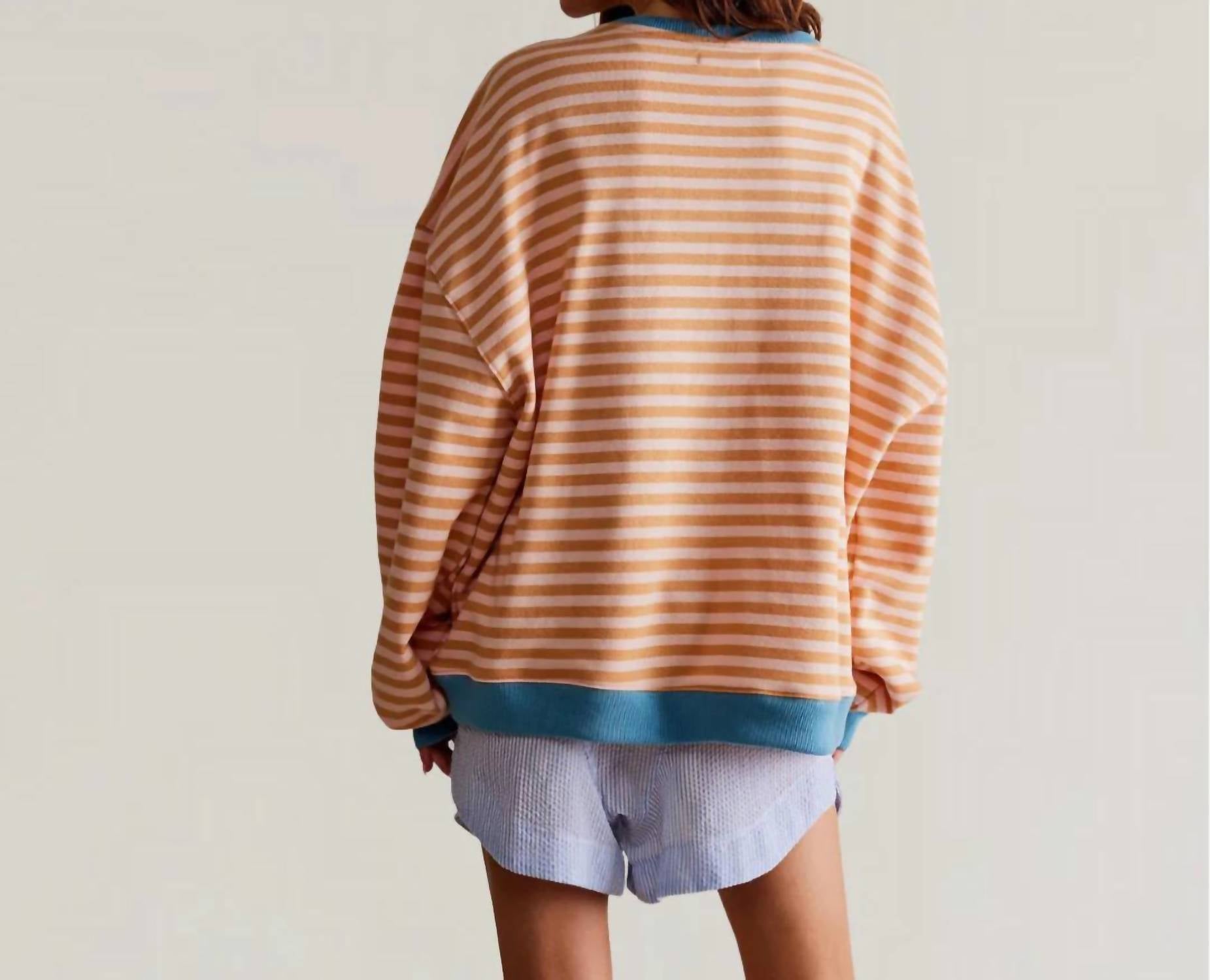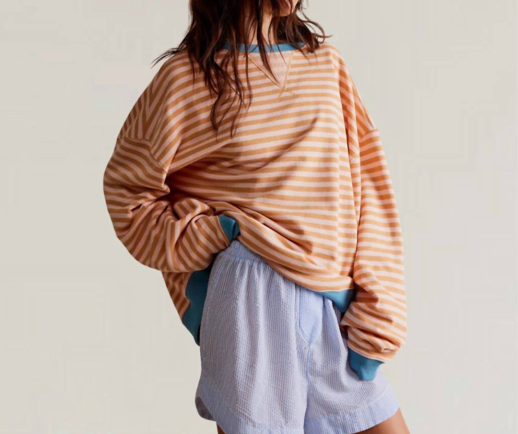 The ultimate go-to sweater, expertly crafted to provide the perfect combination of warmth and style. Its classic design and soft fabric make it a must-have addition to your wardrobe. Introducing the Classic Striped Crew Sweater by Free People, a must-have for effortless weekend style in vibrant orange. This women’s sweater showcases dropped shoulders and a relaxed oversized fit, with a staple striped print and contrasting hems. Composition: 80% Cotton, 20% Polyester. Garment Length: 29". Machine wash cold on gentle cycle. Imported.