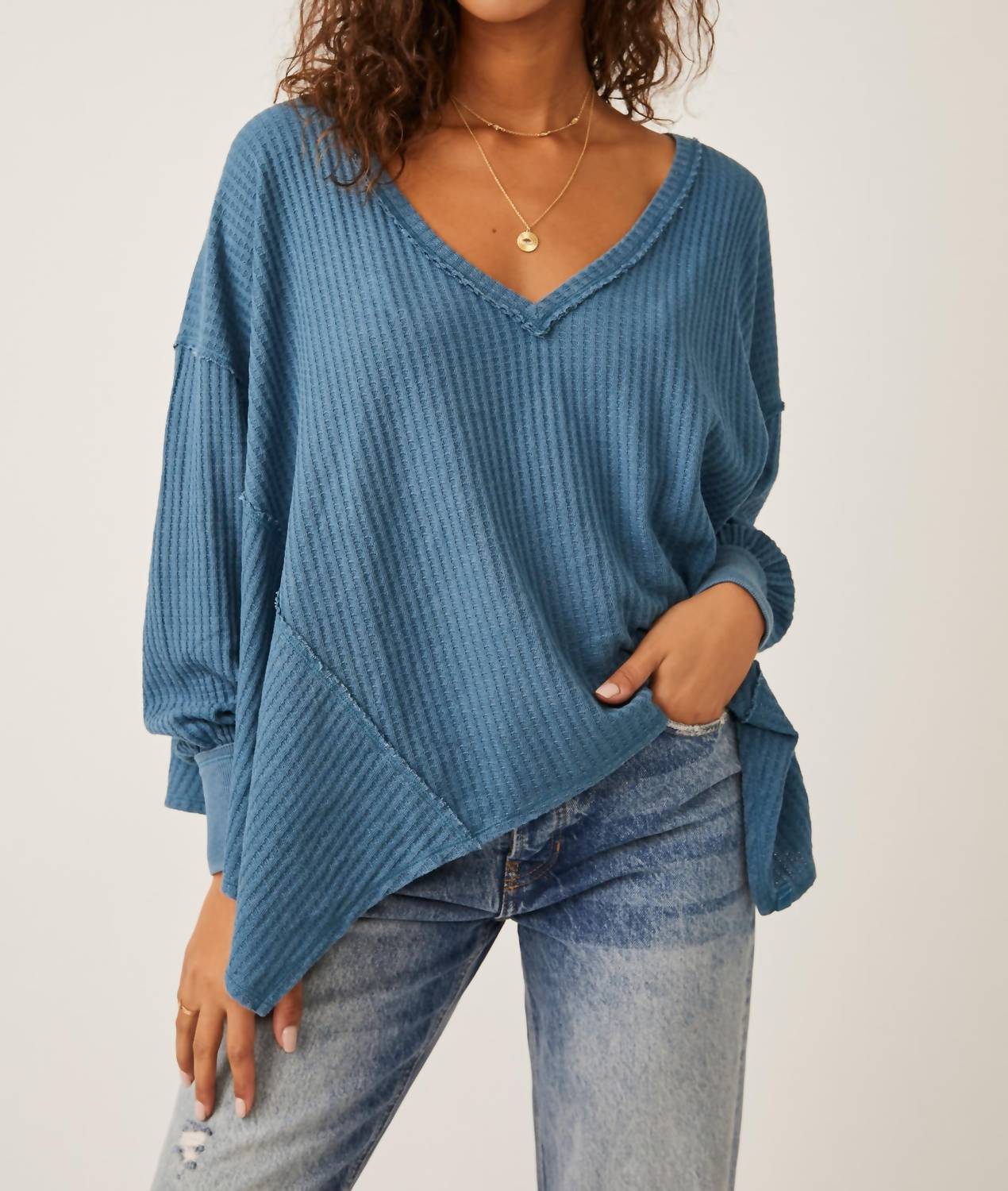 57% algodão, 38% poliéster, 5% elastano. Caimento relaxado e drapeado. Decote em V, ombros caídos, costuras aparentes, malha waffle clássica. Comprimento: 68 cm. Comprimento da manga: 50 cm. Importado.