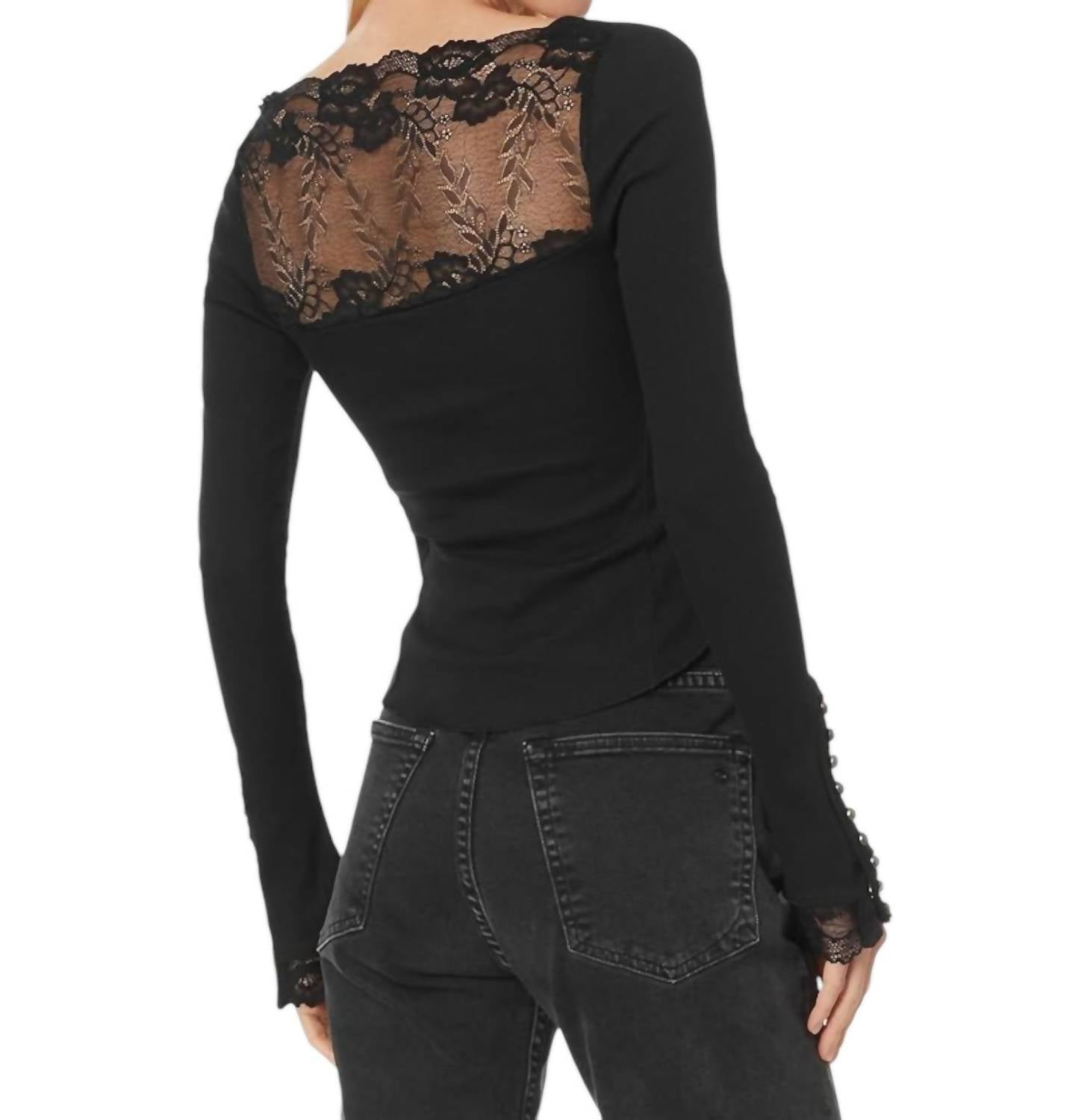 Mistura de elegância simples e detalhes elegantes. Confeccionada em algodão macio com 97% algodão e 3% elastano. Apresentando um corte justo que se estende até o quadril. Decote quadrado combinado com detalhes femininos em renda, punhos com botões de pressão e detalhes de costura definidos. Dimensionalmente precisa, com busto de 75 cm e comprimento de 56 cm. Projetada para ser fácil de usar, com fecho de puxar. Pode ser lavada na máquina com água fria.