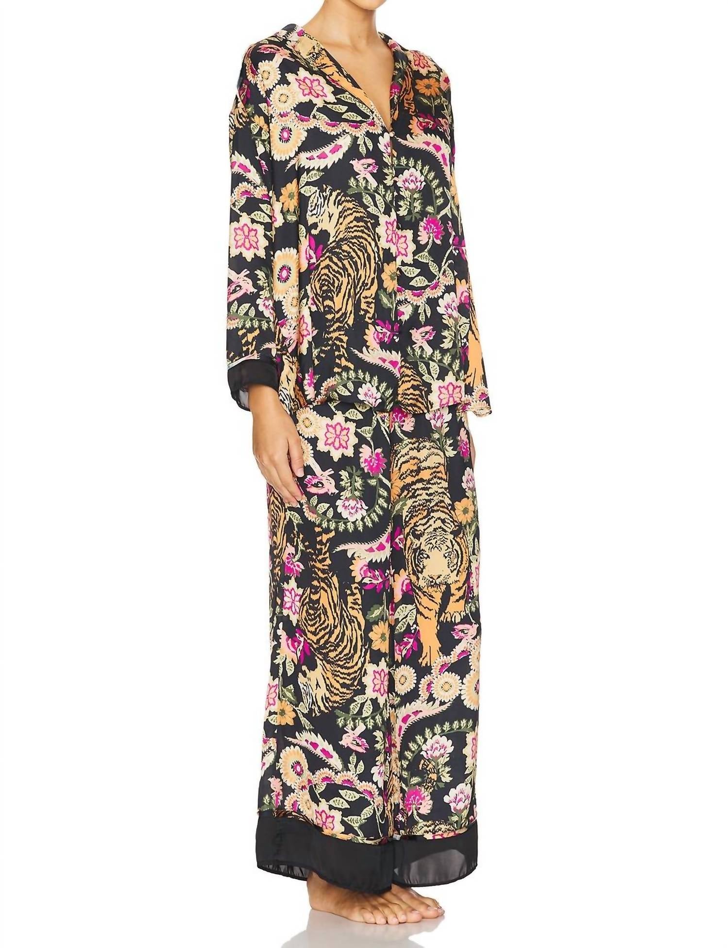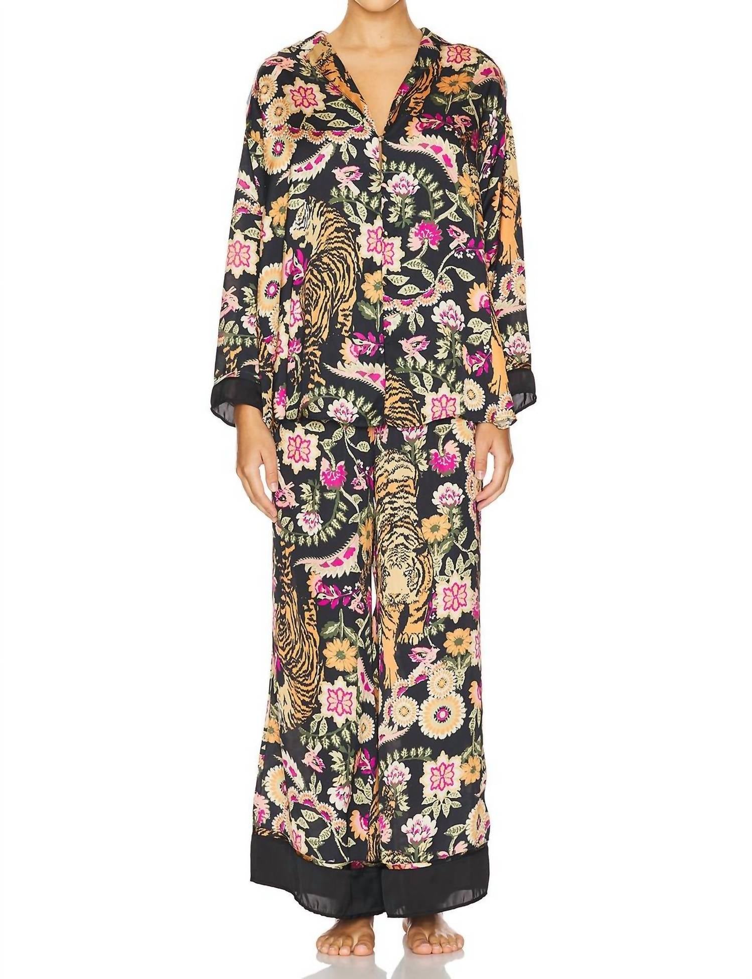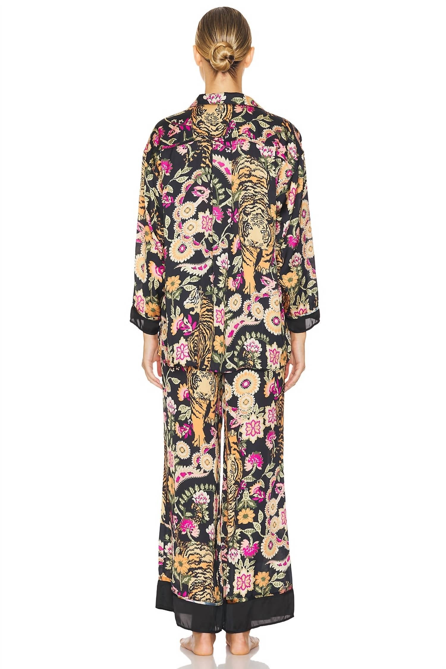 Apresentamos o Conjunto de Pijama Dreamy Days da Free People, criado para mulheres que aliam conforto e estilo. Este requintado conjunto floral de manga comprida é composto por cetim 100% poliéster, proporcionando um toque sedoso em contato com a pele. Fabricado na China, o top possui fecho frontal por botões e gola, complementado por uma calça com cós elástico. Recomenda-se lavar à mão para preservar seu toque macio e luxuoso. A calça é confeccionada com uma abertura de 66 cm no joelho, alargando-se para uma abertura de 76 cm na perna, garantindo relaxamento e estilo.
