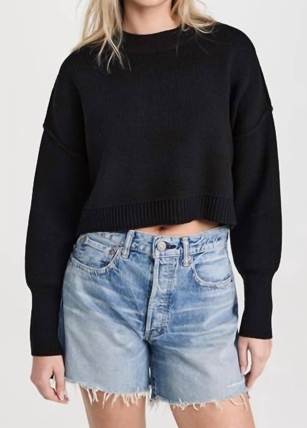 Silhueta folgada e curta, em malha canelada com decote falso, costuras definidas e mangas levemente exageradas para maior modelagem. Lavar à mão com água fria. 56% algodão | 37% acrílico | 6% poliamida | 1% elastano. Importado. Tamanho real.