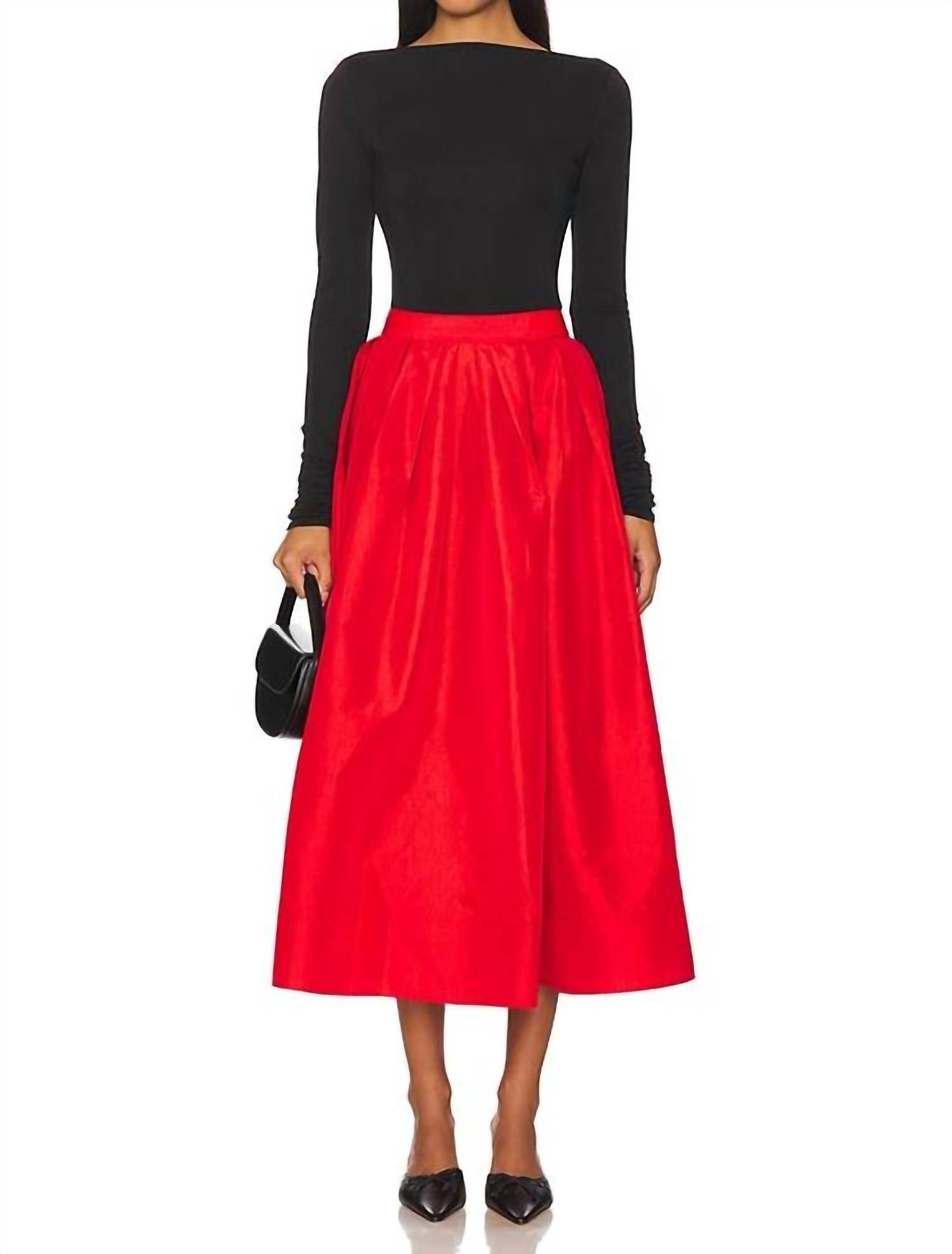 Coloque sua camiseta favorita dentro desta saia de comprimento midi para um visual descolado e descontraído. Descubra a Saia Emilia Full da Free People, uma peça ousada e marcante na cor Vermelho High Risk que chama a atenção. Com 86 cm de comprimento, esta saia combina 50% náilon e 50% poliéster para um acabamento durável e elegante. Feita no Camboja, possui fecho de zíper oculto nas costas e detalhes levemente plissados. Cuide bem desta saia optando pela lavagem a seco para manter seu charme vibrante.