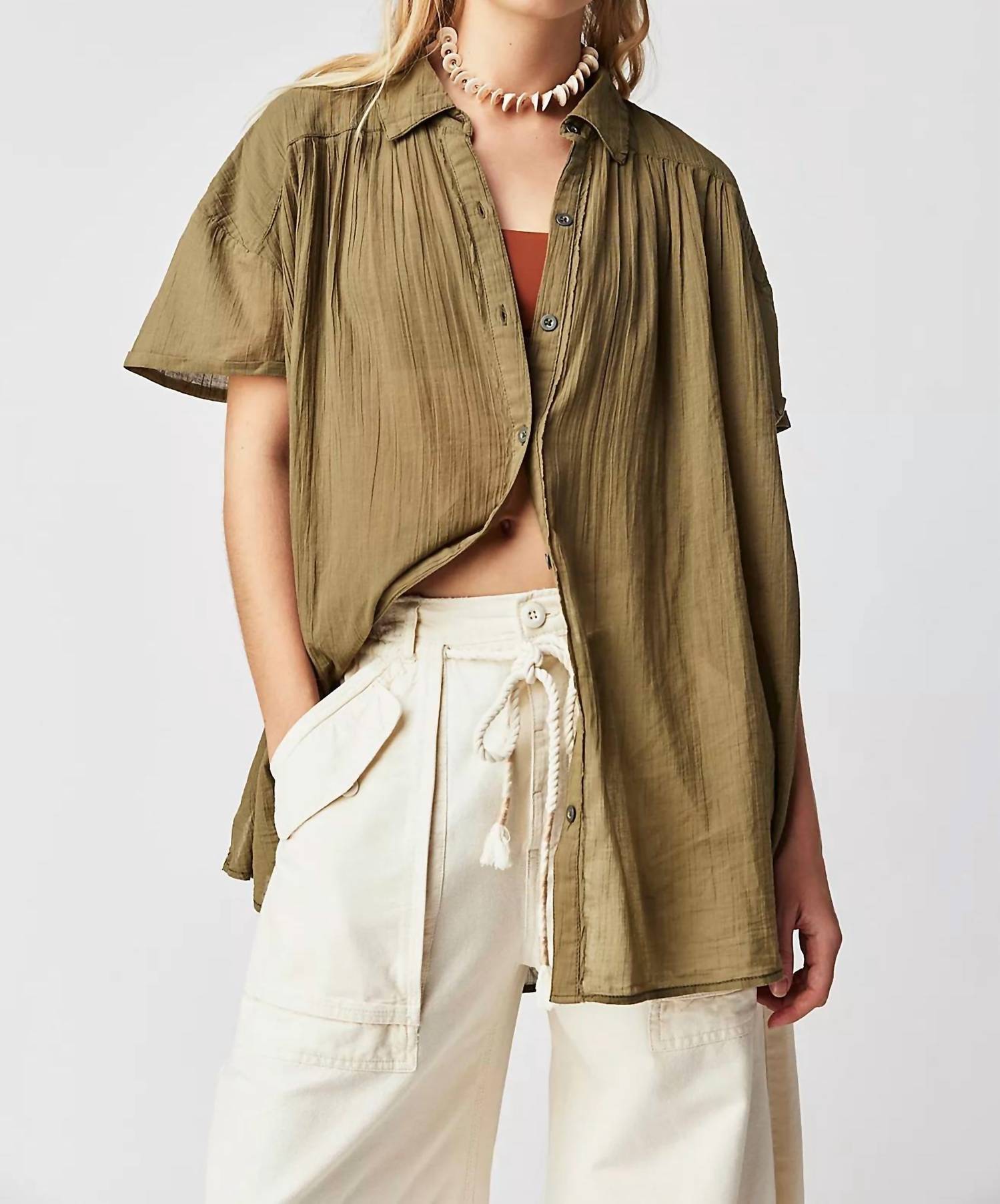 Um complemento perfeito para qualquer guarda-roupa, esta blusa clássica estilo túnica é elegante e prática. Você pode facilmente transitar do escritório para o jantar com esta blusa chique.