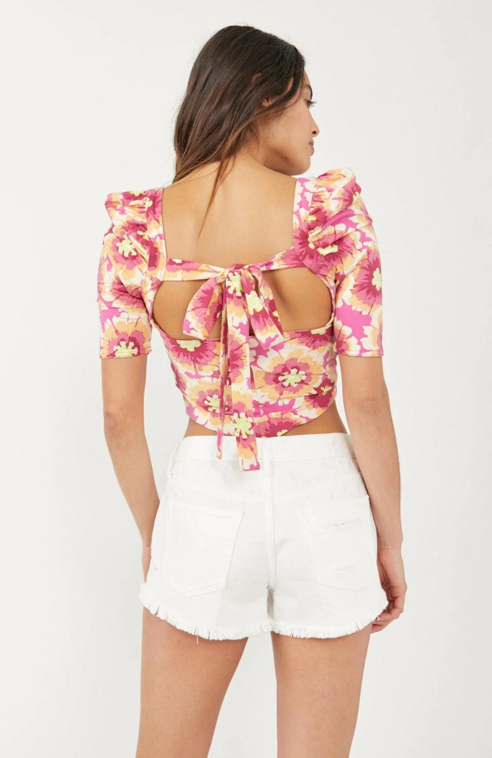 97% algodão, 3% elastanoFabricado na ÍndiaLavável à máquinaDecote quadradoDetalhe nas costas com alçasOmbros levemente bufantesTecido de jersey com bainha em formato de lenço