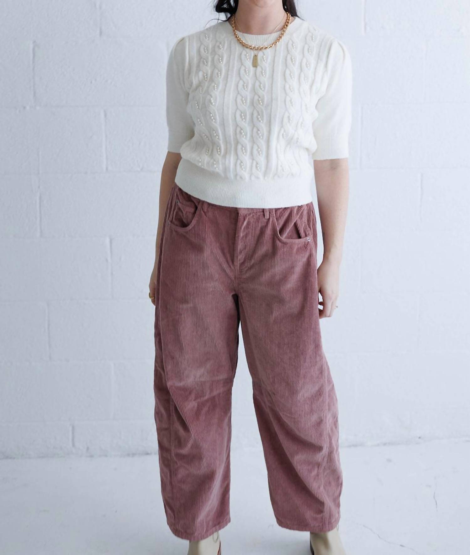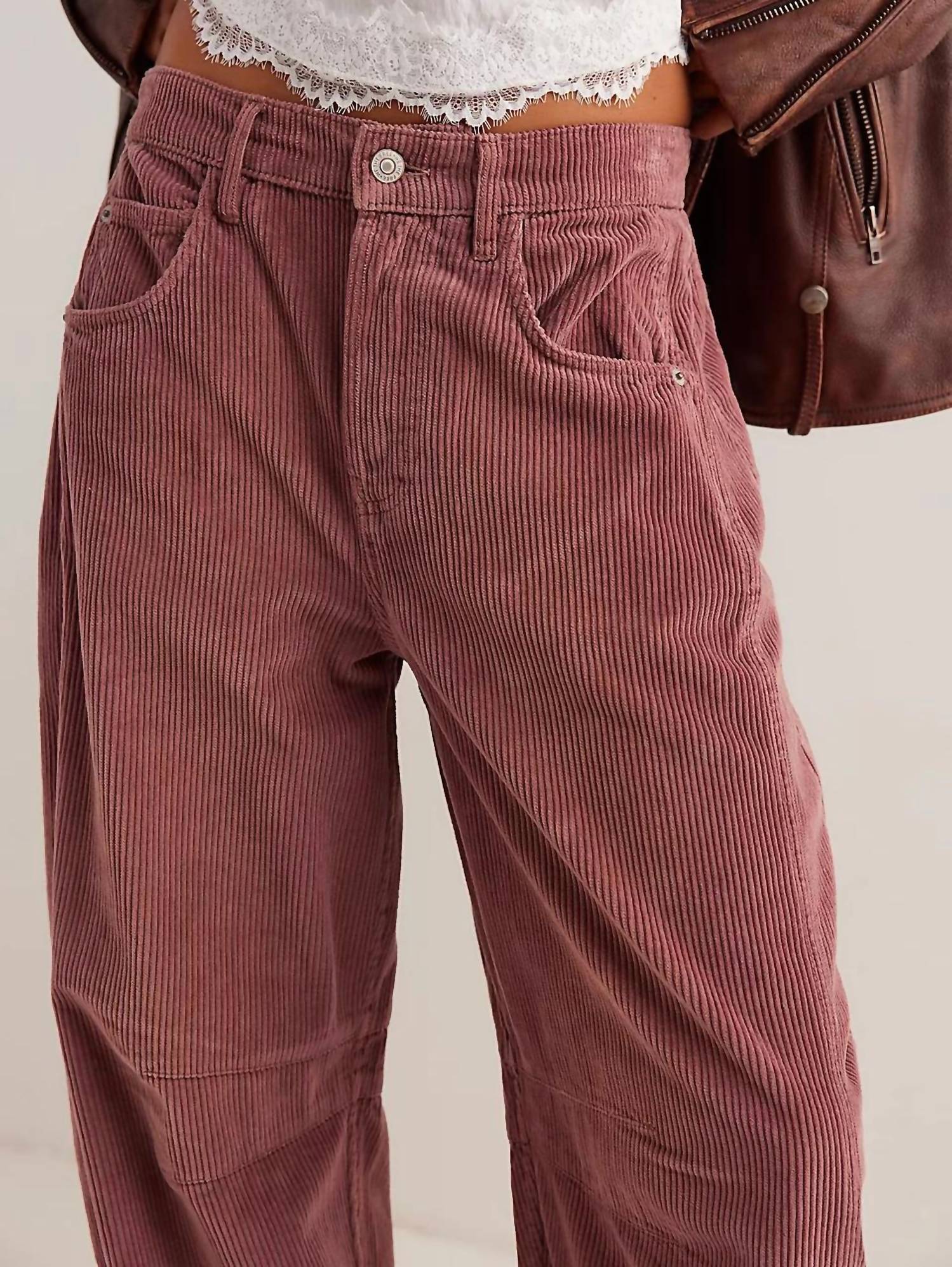 Tão fofos quanto confortáveis. Descubra a Calça Jeans Good Luck Cord Barrel da Free People, confeccionada em veludo cotelê texturizado para um visual descontraído e estiloso. Esta calça jeans de cintura média apresenta um caimento relaxado com pernas largas que afunilam graciosamente no tornozelo, tornando-a uma peça única para o seu guarda-roupa. Ela é projetada com um prático fecho de botão, passantes para cinto, estilo com quatro bolsos e detalhes de costura por toda a peça. Cuide bem desta calça jeans lavando-a na máquina para manter seu tom rosa desbotado com aparência de novo.
