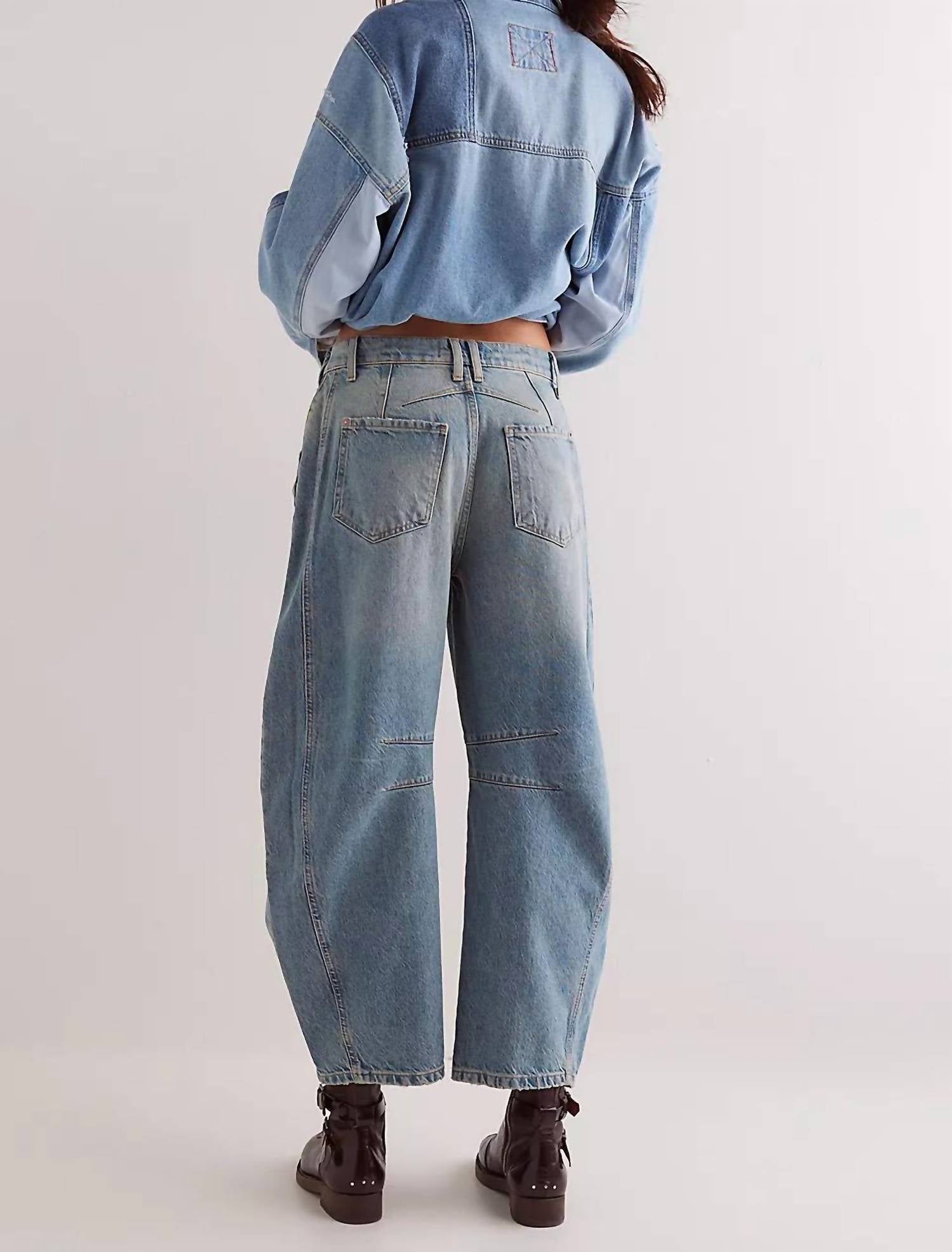 Tão fofos quanto confortáveis. Apresentam um corte folgado e relaxado, com cintura média, pernas largas e comprimento até o tornozelo. Confeccionadas em uma mistura de 40% algodão reciclado, 17% algodão e 43% liocel, elas apresentam um tecido jeans rígido com sutis detalhes de desgaste e costura. O fechamento é facilitado por um botão e, para manutenção, lave na máquina com água fria e seque no varal. Ideal para um visual descontraído e chique, mantendo a consciência ambiental por meio de materiais reciclados.