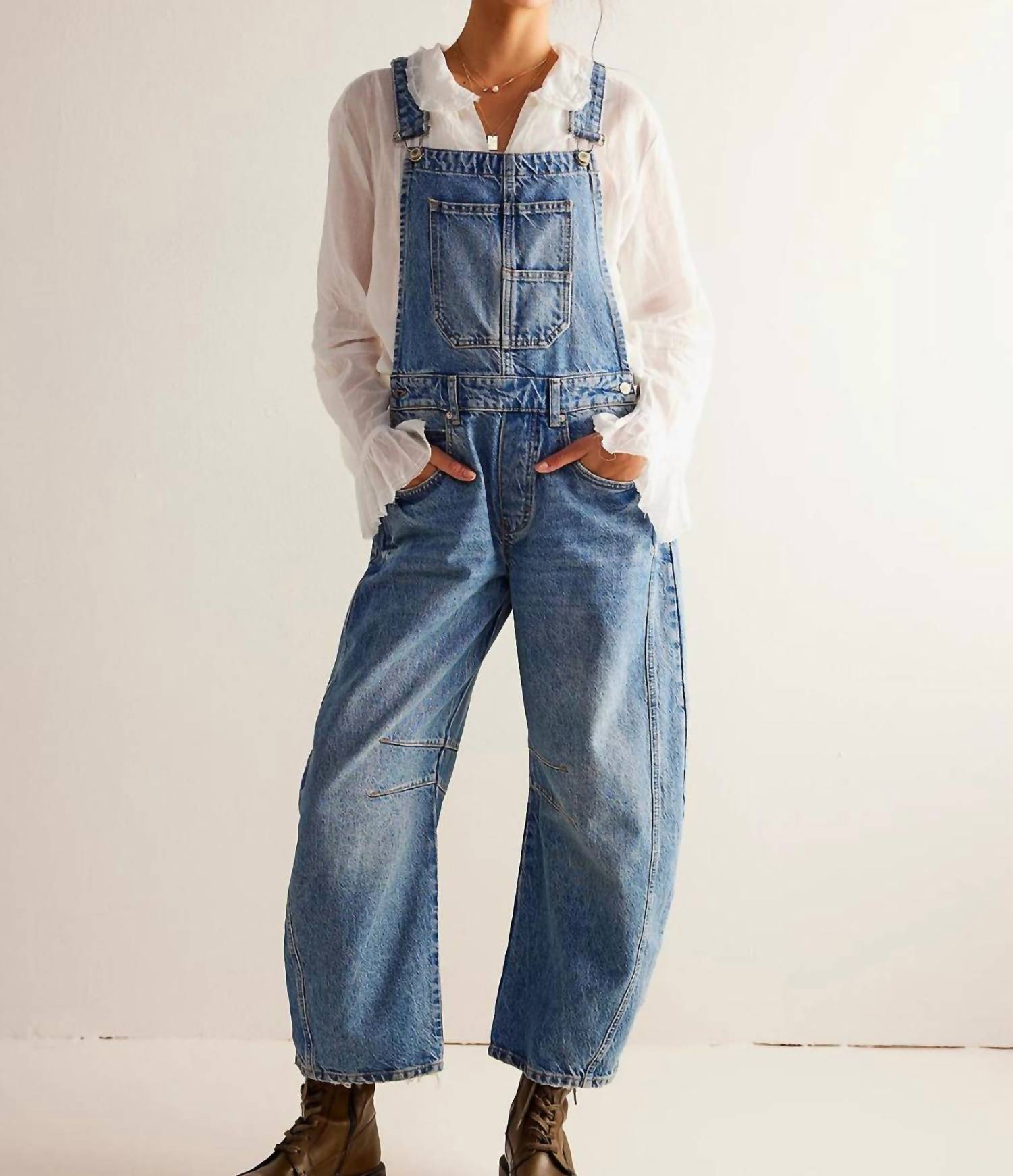 Who doesn't love a good pair of overalls? Discover the Good Luck Overalls by Free People, crafted from 100% soft-washed cotton denim for a relaxed yet confident look. These stylish overalls feature an adjustable bib-and-brace design with deep front pockets and a front bib pocket, enhancing practicality and flair. The oversized, full-length shape beautifully tapers at the knee, creating a unique wide barrel-leg style. Side button detailing and adjustable brace straps add a customizable fit, while the ultra-light beam color elevates every ensemble. Machine wash.