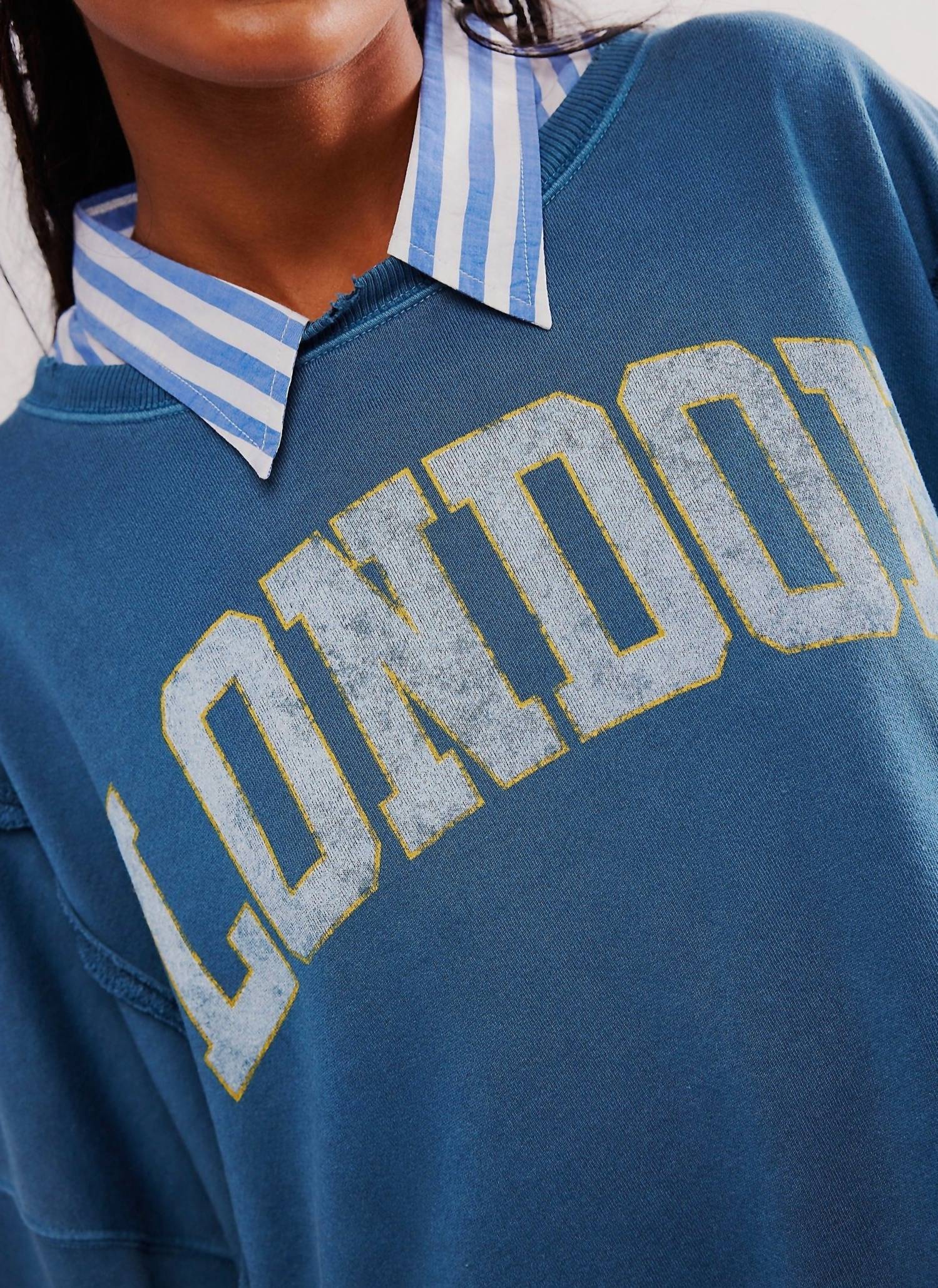 Tecido confortável, design impecável - Conheça o moletom que você nunca mais vai querer tirar. Eleve o seu estilo casual com o Moletom Graphic Camden da Free People, disponível em um moderno Combo Azul-Marinho London. Esta camiseta de manga comprida oferece um caimento folgado e relaxado, com decote redondo, ombros caídos e estampa inspirada no estilo universitário para um toque vintage. Composto por uma mistura de algodão, o mix de materiais inclui 51% algodão e 49% poliéster, com nervuras inteiramente de algodão. O moletom possui fecho pull-on e é fácil de cuidar, necessitando apenas de lavagem à máquina.